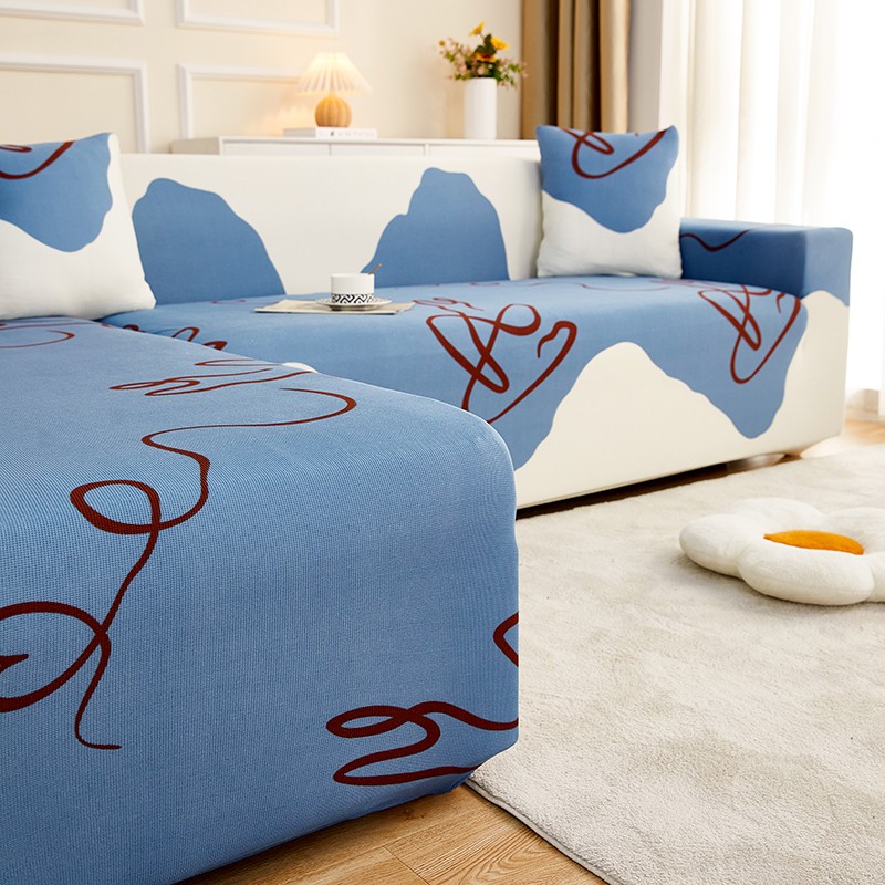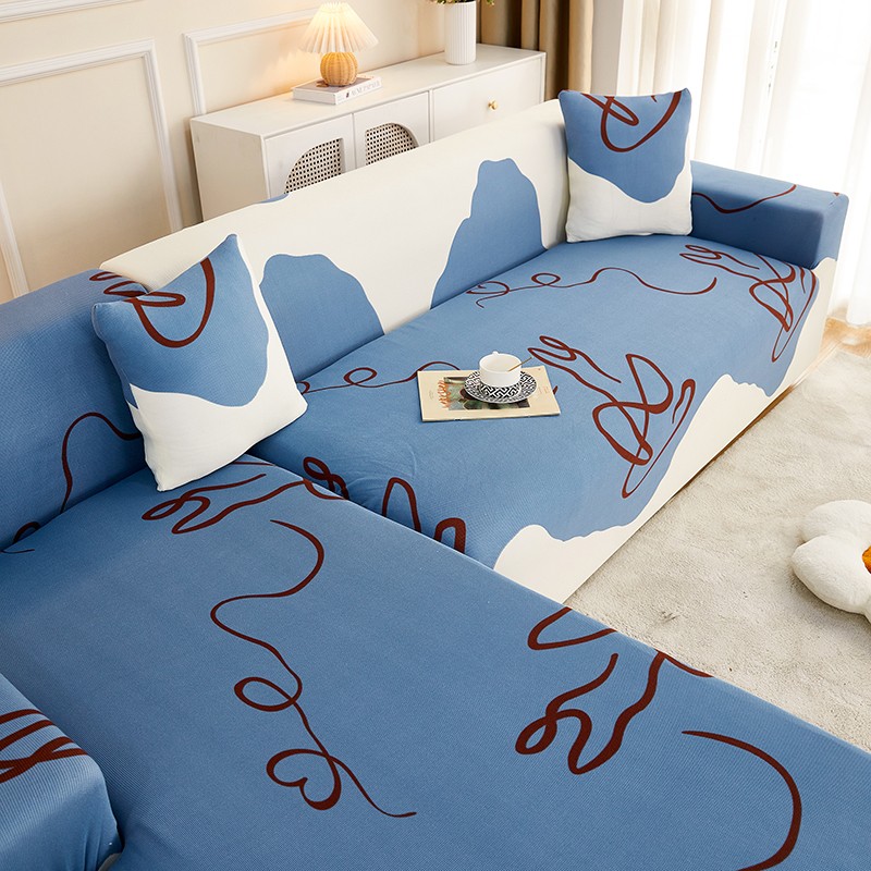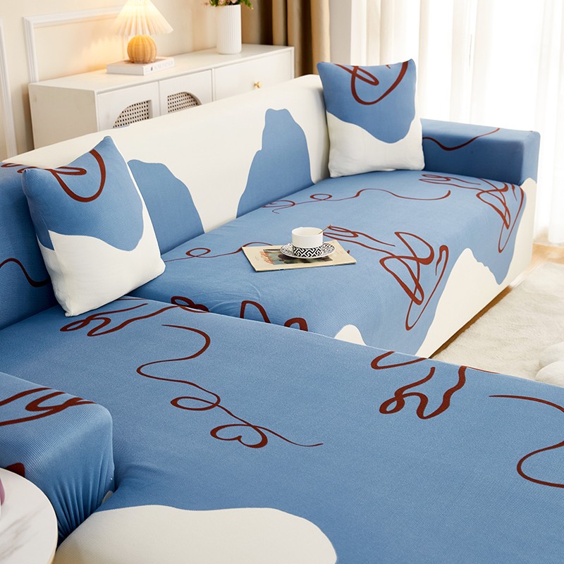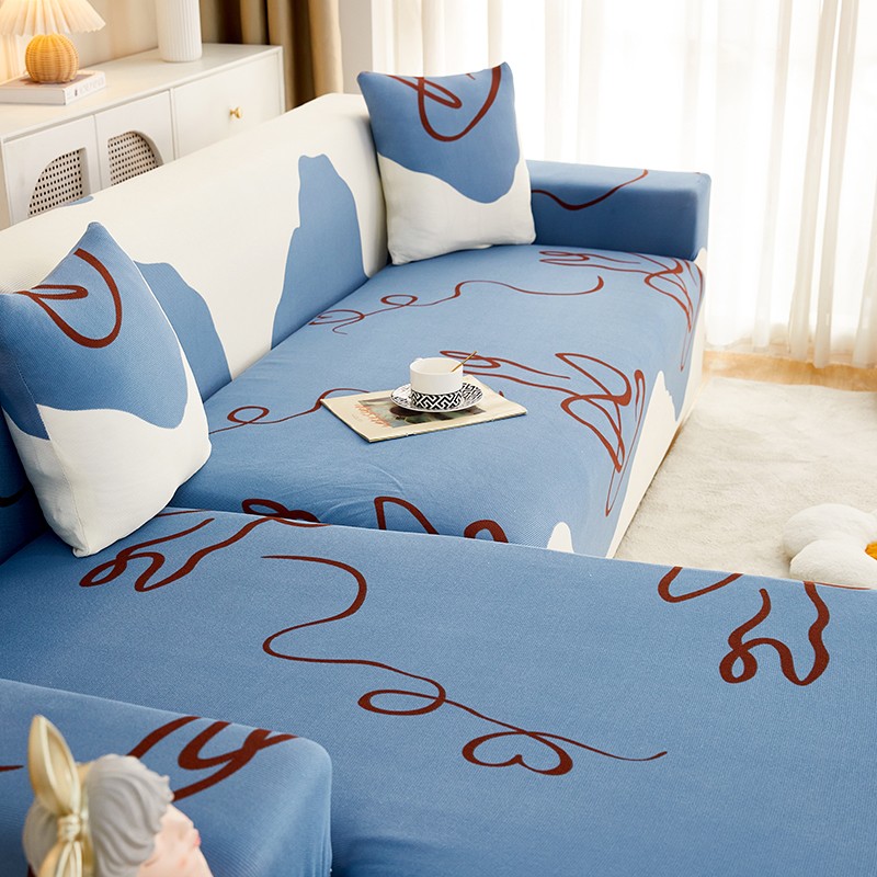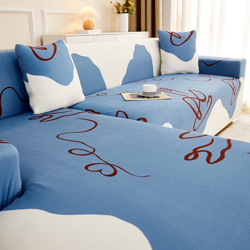 丝绮鹿2023针织柔肤格贵妃沙发套松紧款 买一个沙发套默认送一个抱枕套 简爱-蓝色