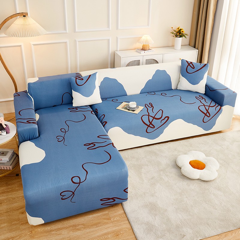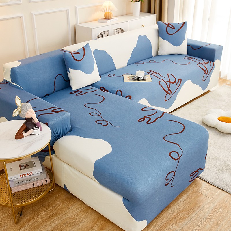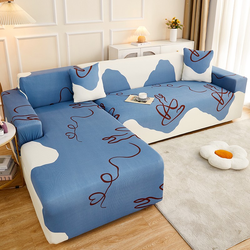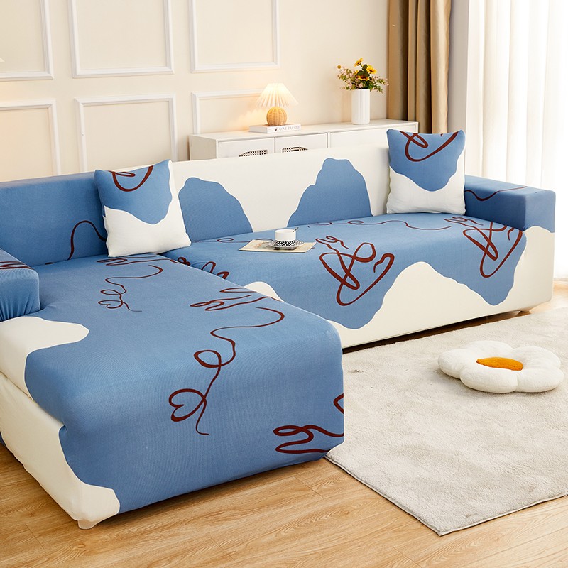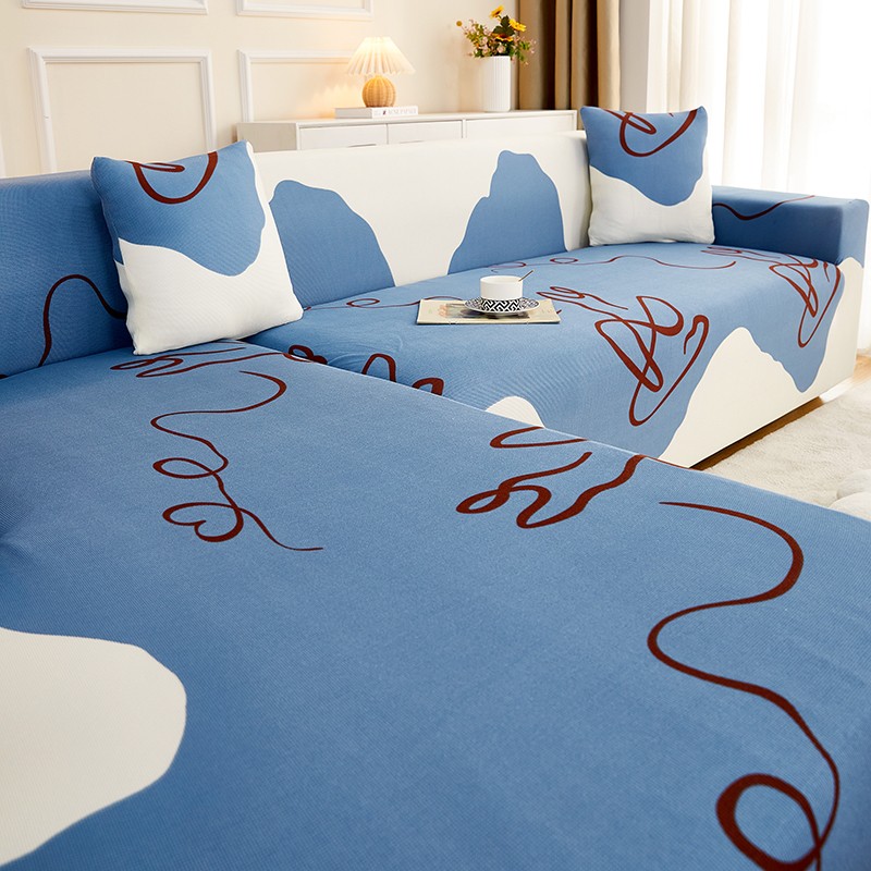 丝绮鹿2023针织柔肤格贵妃沙发套松紧款 买一个沙发套默认送一个抱枕套 简爱-蓝色