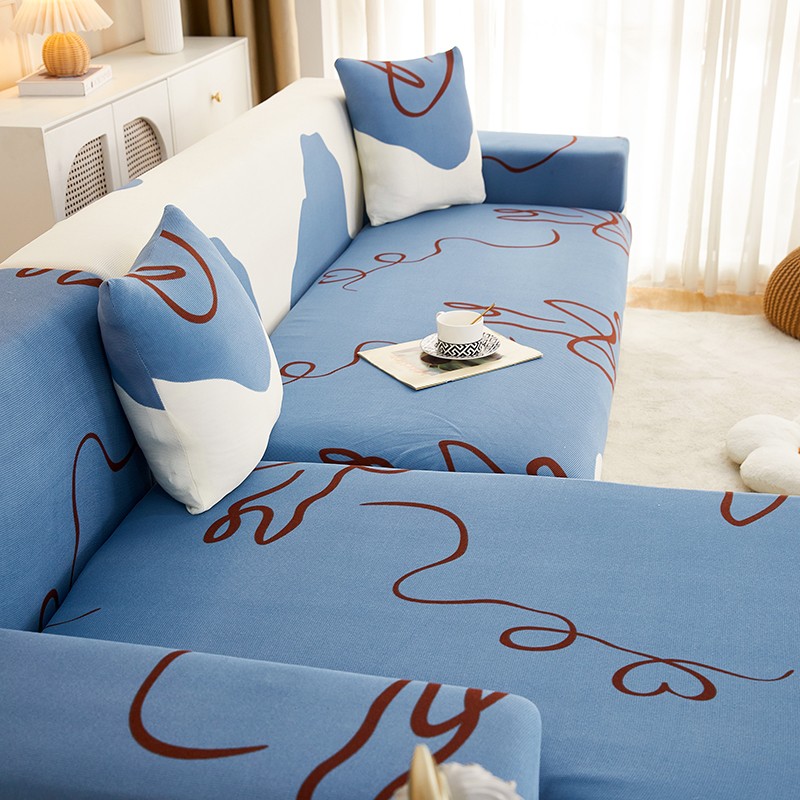 商品名称:丝绮鹿2023针织柔肤格贵妃沙发套松紧款 买一个沙发套默认送一个抱枕套 简爱-蓝色
