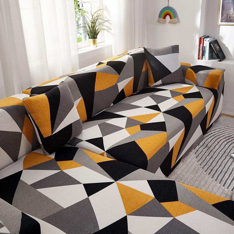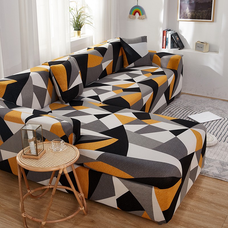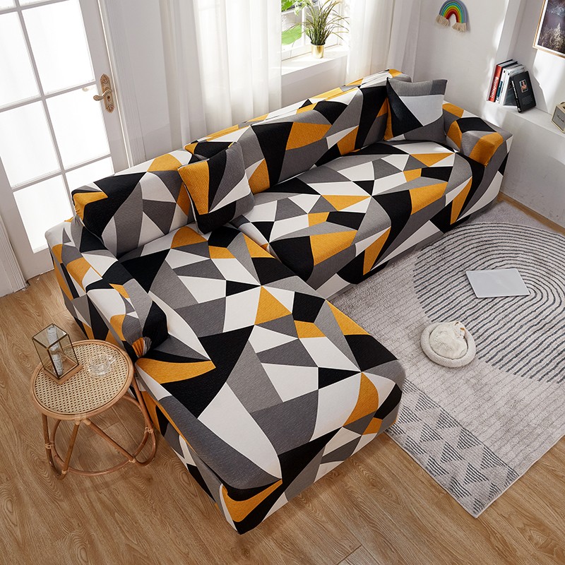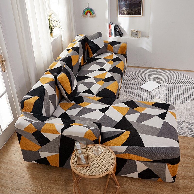 丝绮鹿 2023新款牛奶丝沙发套贵妃图(松紧款) 几何碎片