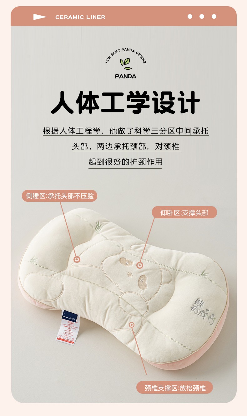 商品名称:2024新款 趣味软萌 熊猫图案设计 多维度护颈 带来深度好睡眠