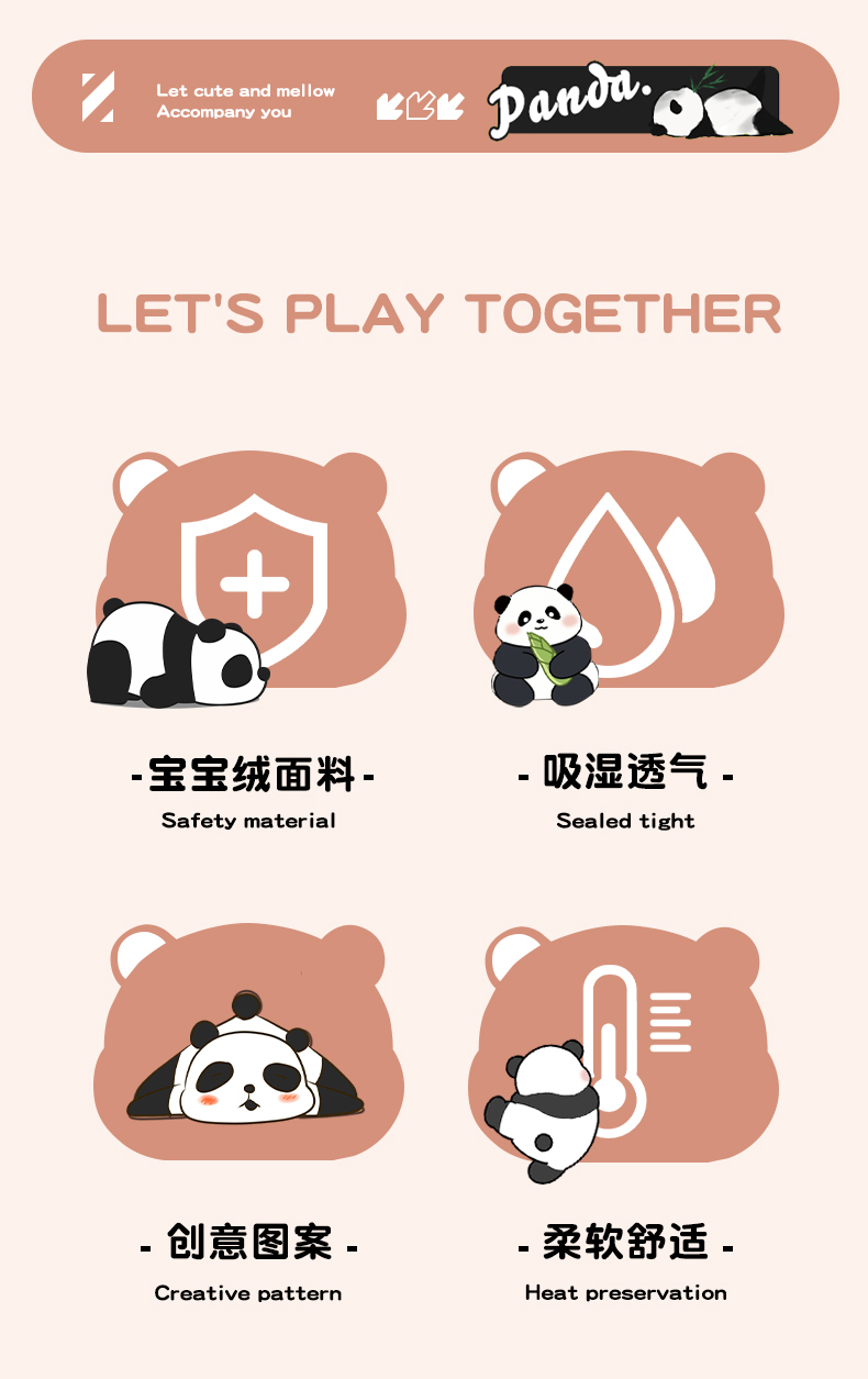 2024新款 趣味软萌 熊猫图案设计 多维度护颈 带来深度好睡眠