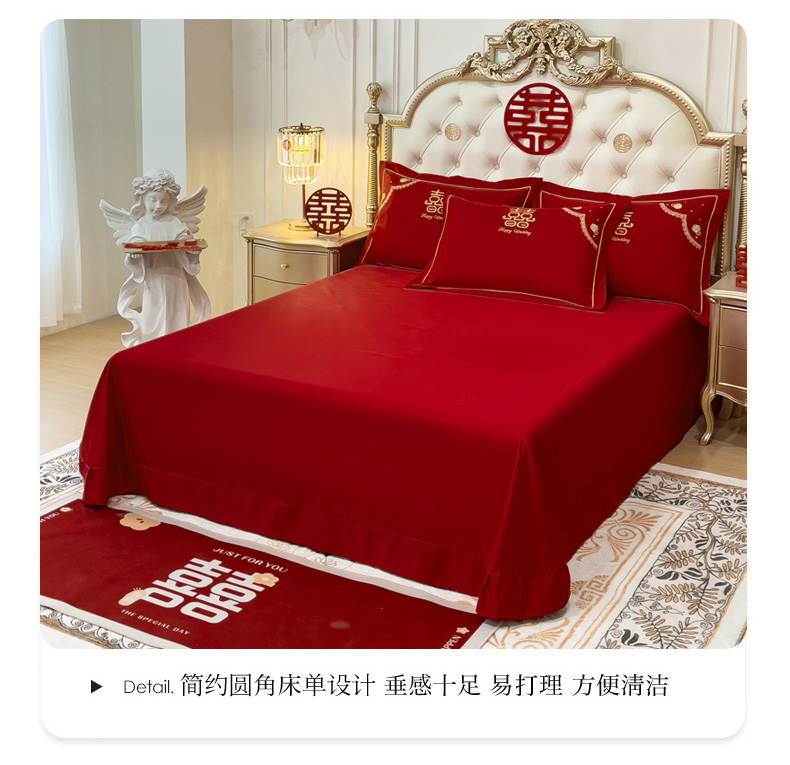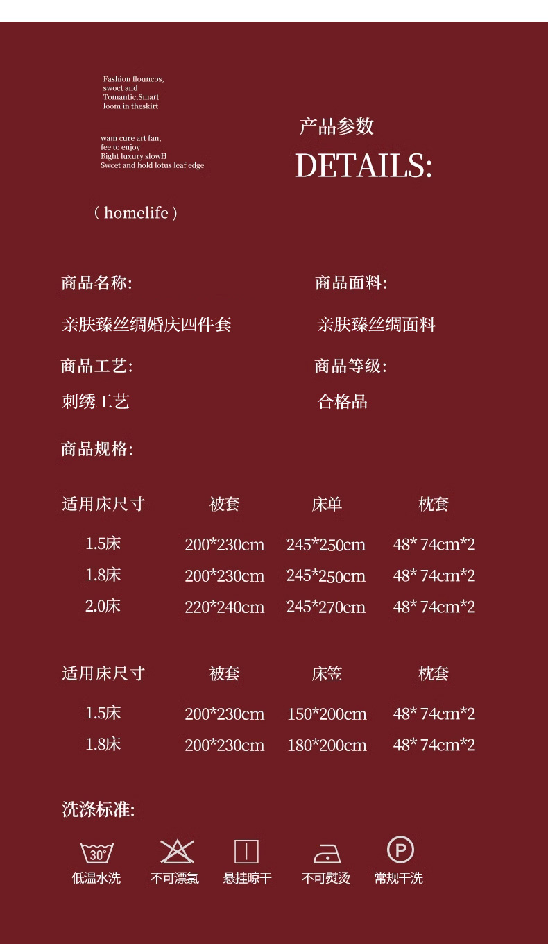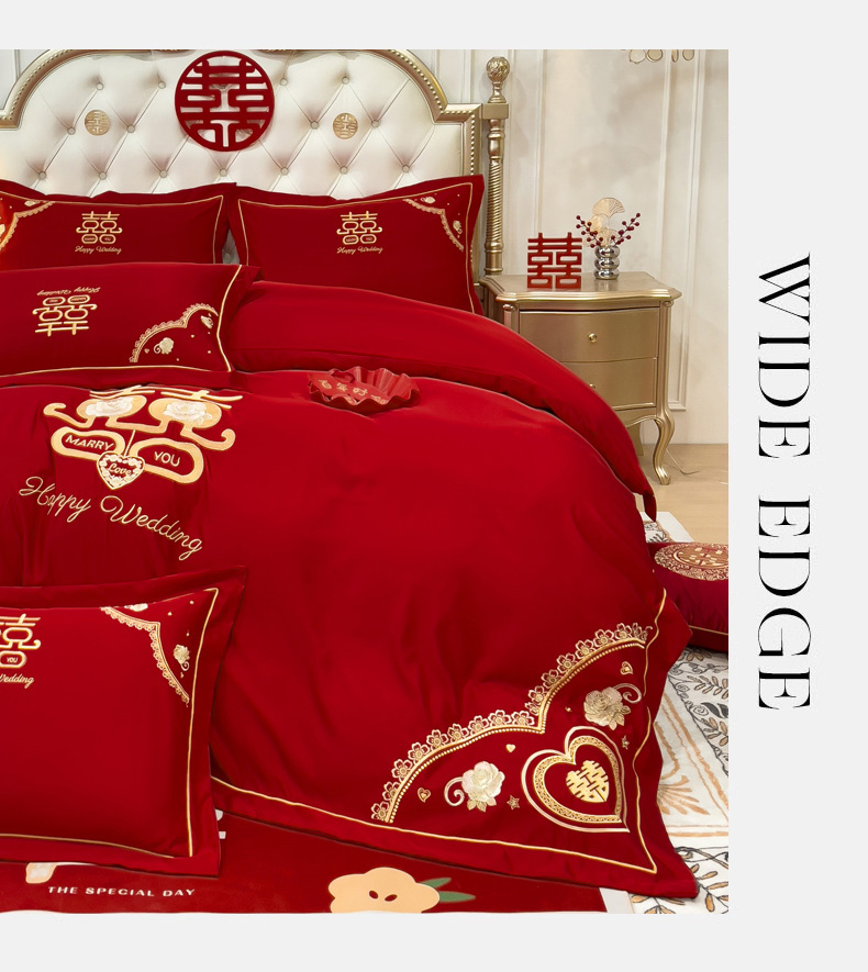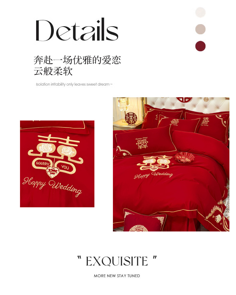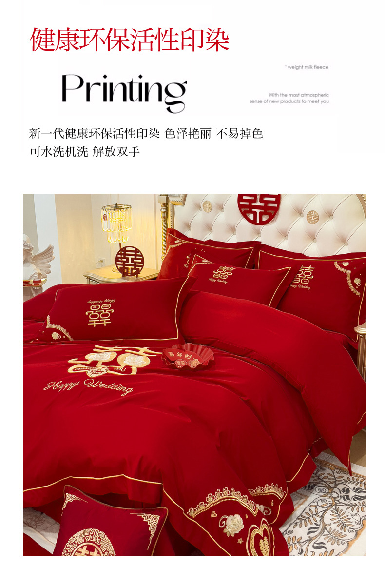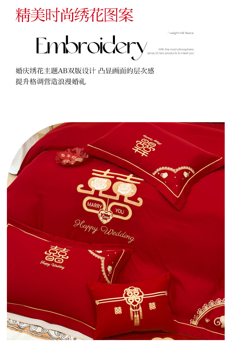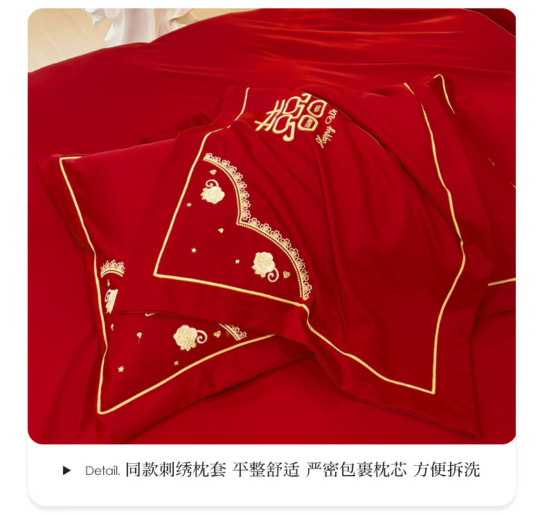 商品名称:菲儿家纺 2023新款绣花亲肤舒适臻丝绸国潮婚庆四件套 喜结良缘