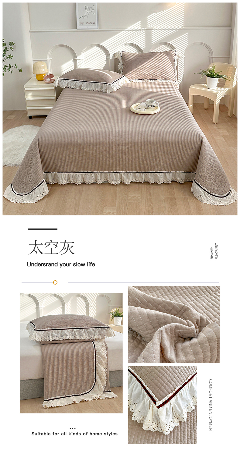 商品名称:上喜 热卖双层纱花边款床盖三件套 太空灰
