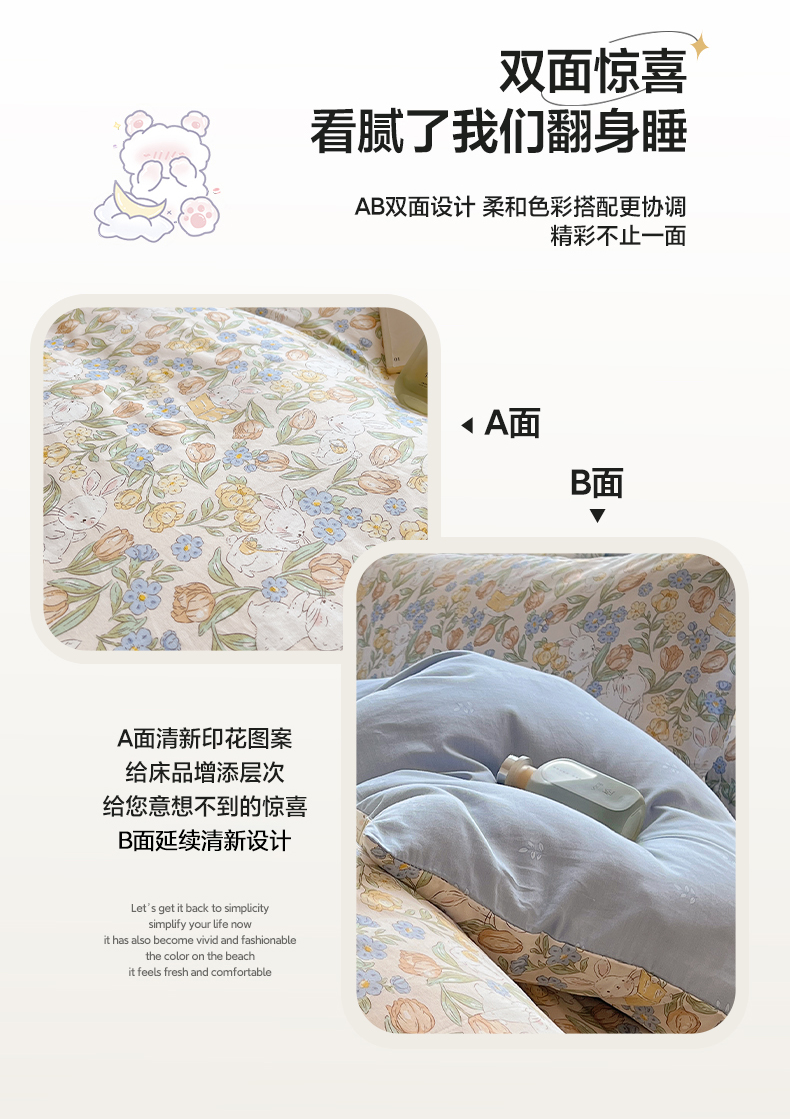 总盛馨家纺 2023新款ins北欧风高支高密全棉喷气小清新纯棉四件套,花丛兔,锦鲤,快乐小狗,梦幻,梦境小兔,入夏,若微,溪沐,叶墨新晨,樱桃兔,星球家园,草莓兔,花粉兔,花花小熊,花开富贵,花蓝兔,花胥梦粉,花韵,狂想曲蓝,萌宠乐园,蜜桃公主,莫奈花园蓝,奇妙幻想蓝,曲奇小熊,圣歌娜,诗情画意,桃桃兔,甜蜜小花,文特森 咖,小黄鸭,叶叶小花,油画草莓,丛林家园,粉色花海,可可大草莓,浪漫花朵,满庭花开,漫时光,暖阳紫,郁金香小兔