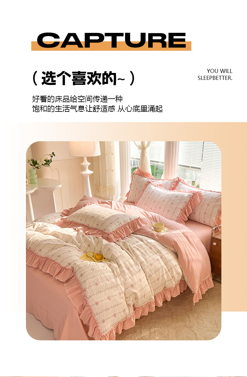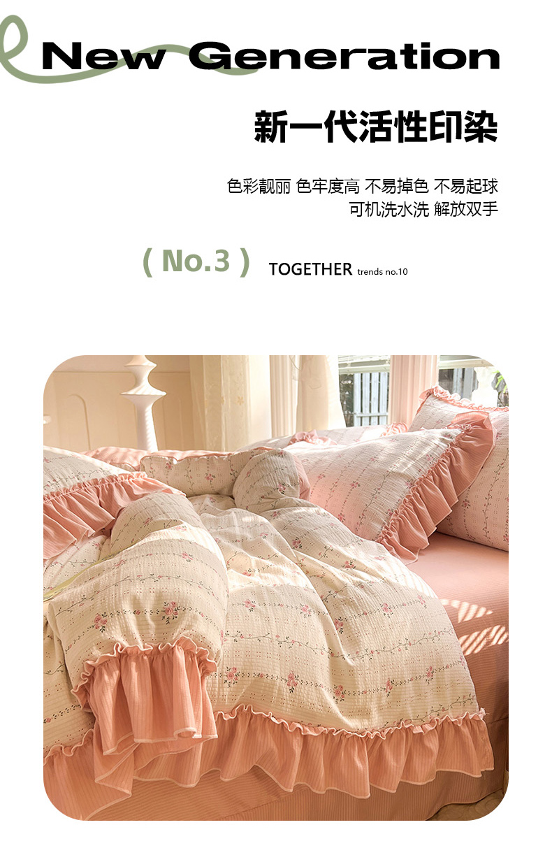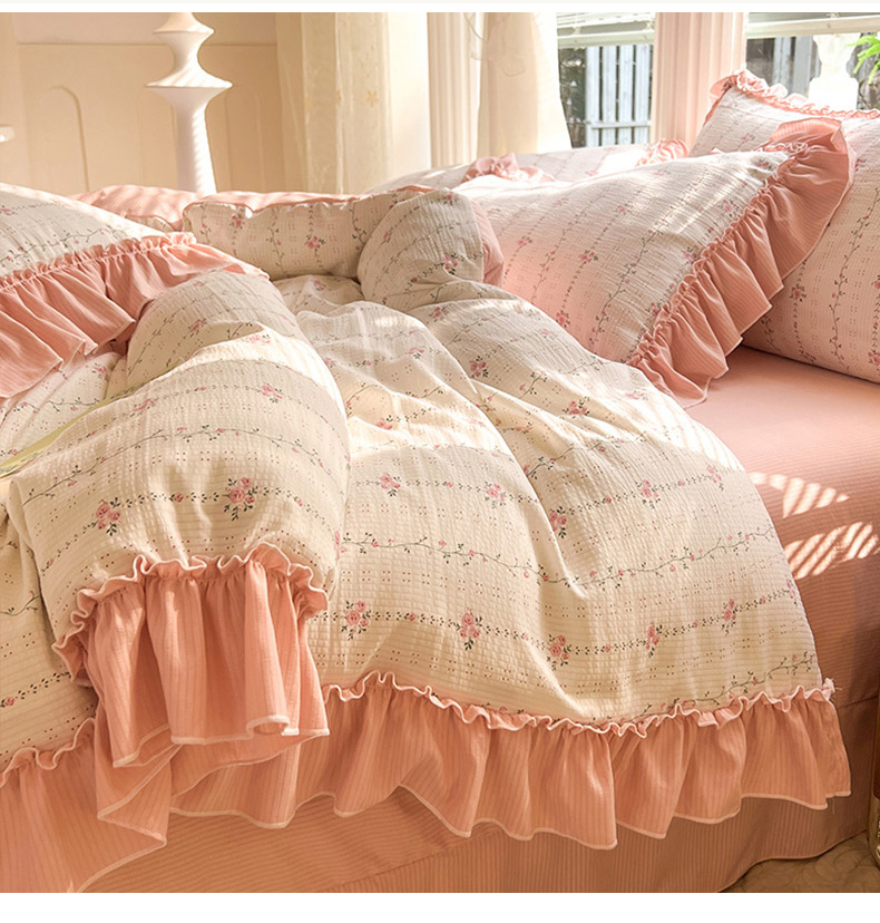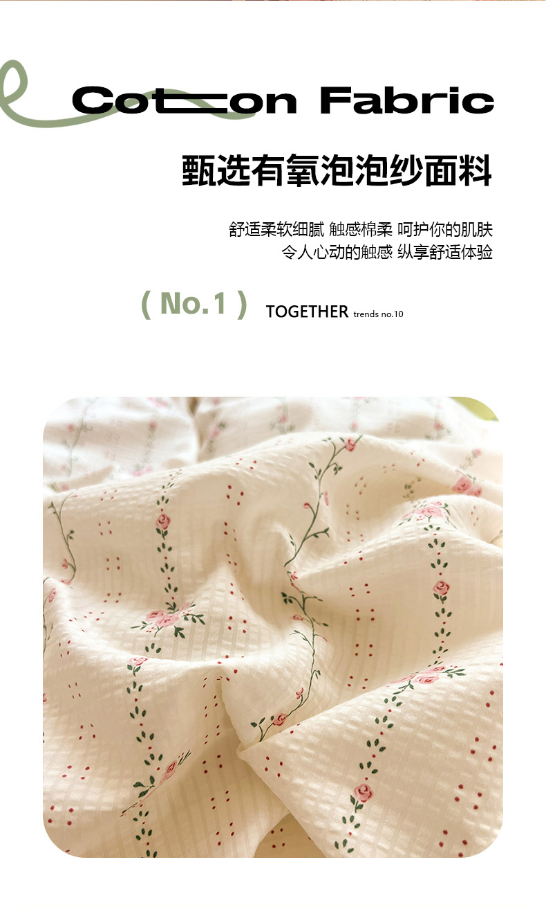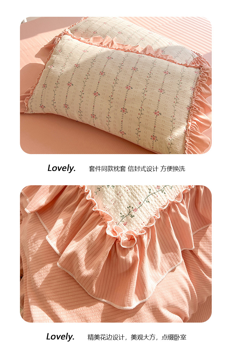 商品名称:慕梵家居 2024新款泡泡纱花边款四件套 花边款-蔷薇花开