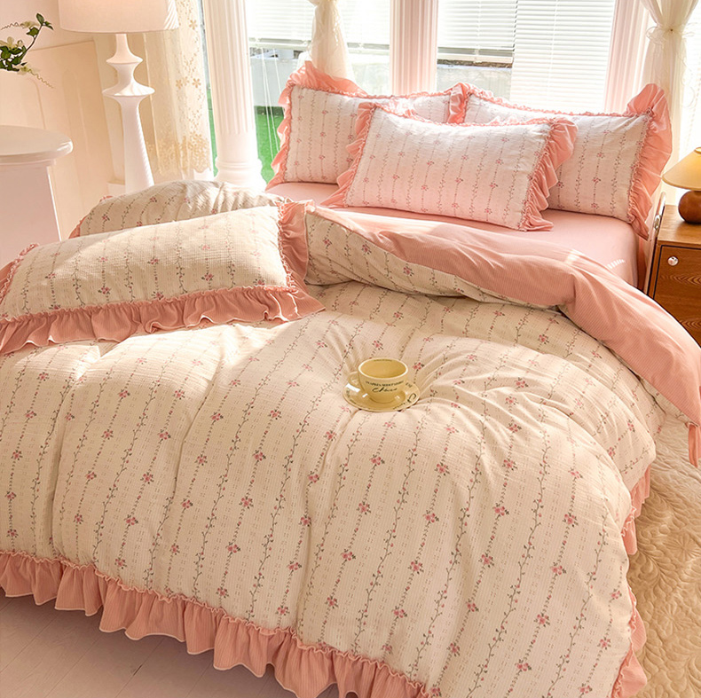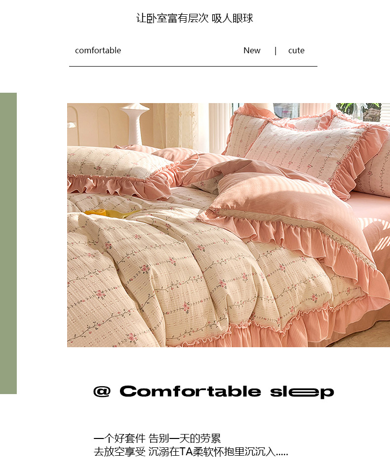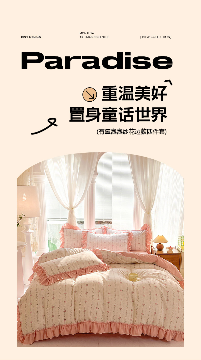 慕梵家居 2024新款泡泡纱花边款四件套 花边款-蔷薇花开