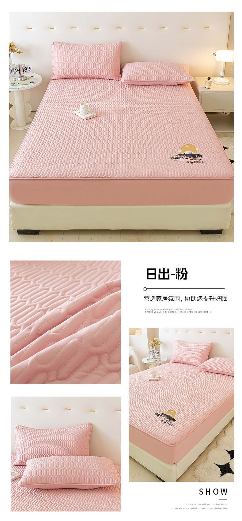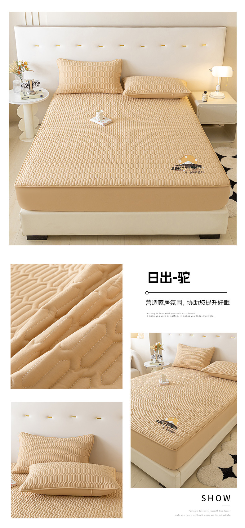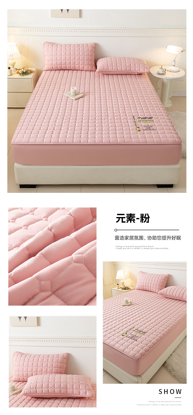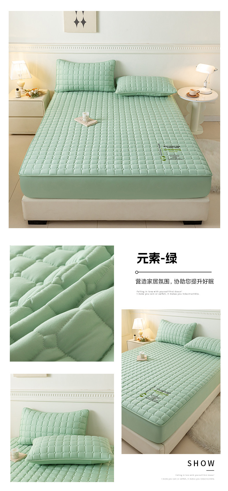 (总)卡伦 2025新款原棉抗菌大豆纤维防水夹棉床笠,白色,淡粉,果绿,卡其,水蓝,星灰