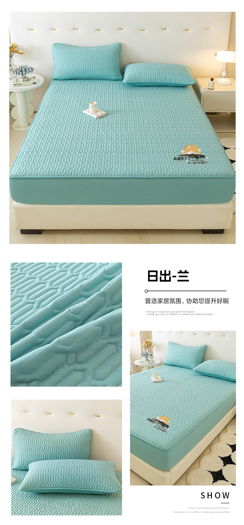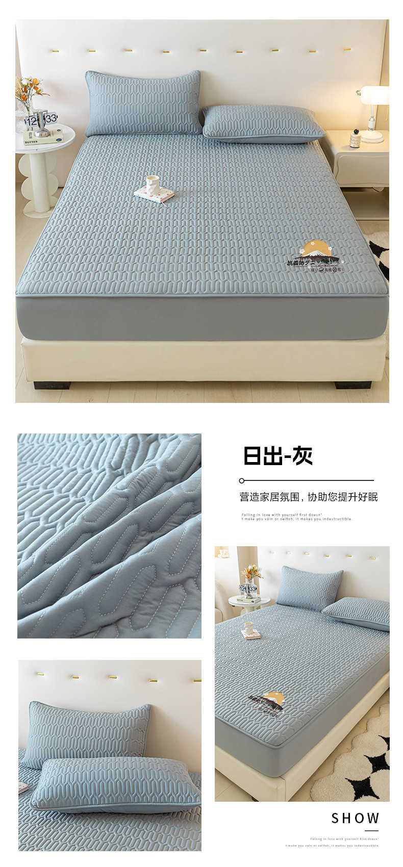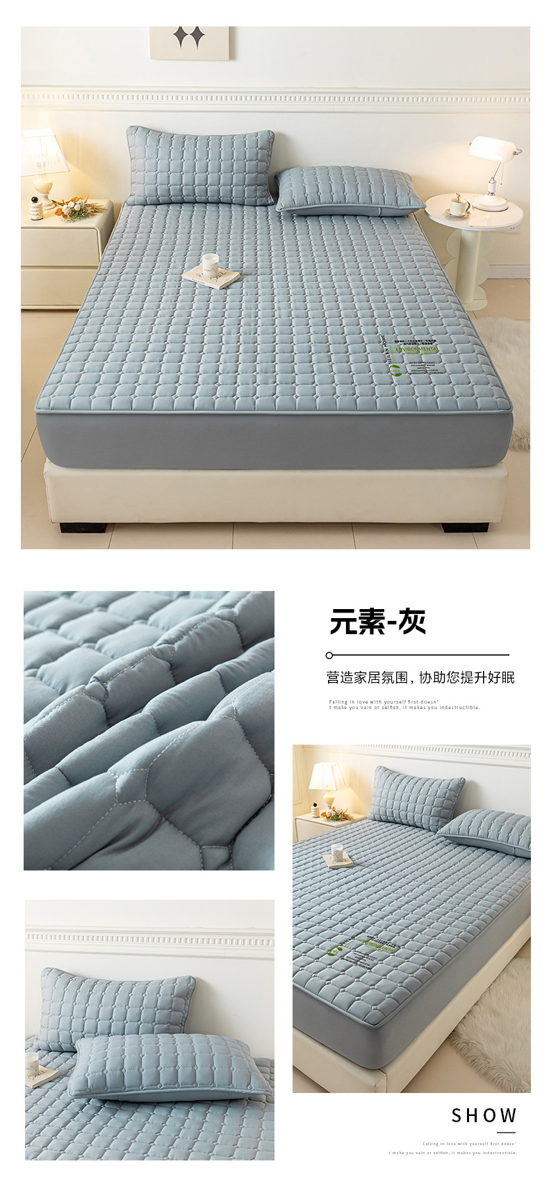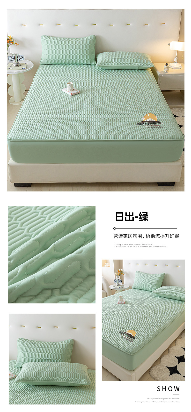 (总)卡伦 2025新款原棉抗菌大豆纤维防水夹棉床笠,白色,淡粉,果绿,卡其,水蓝,星灰