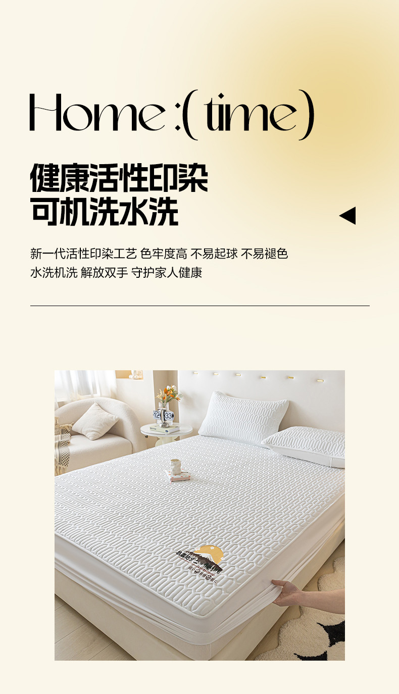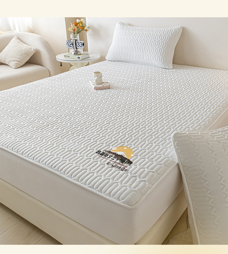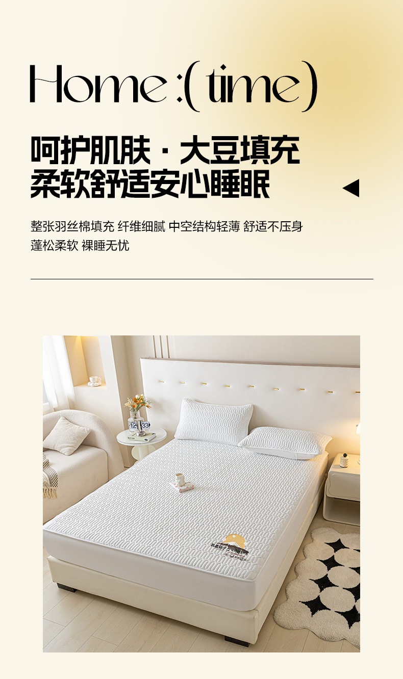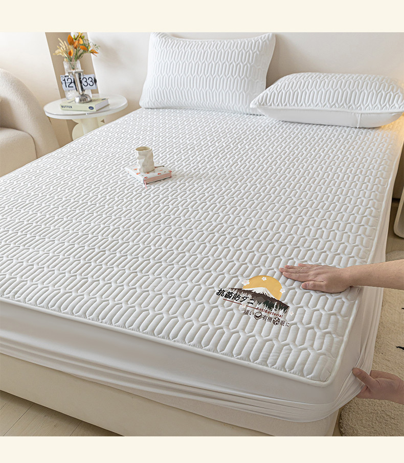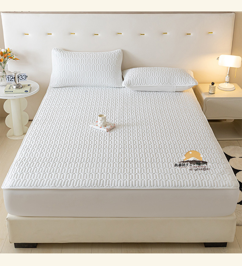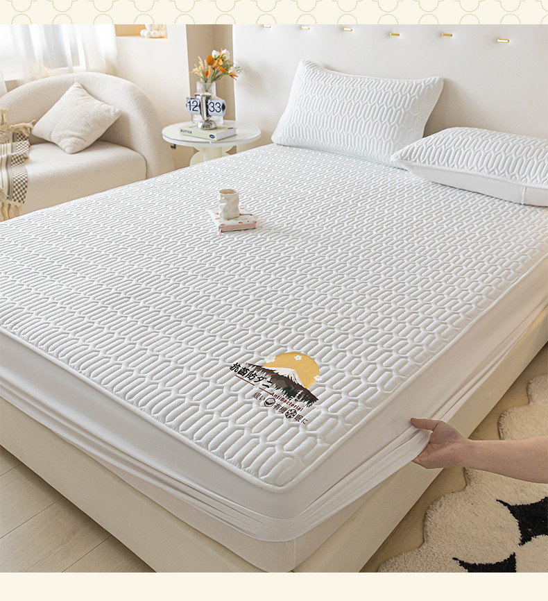 (总)卡伦 2025新款原棉抗菌大豆纤维防水夹棉床笠,白色,淡粉,果绿,卡其,水蓝,星灰
