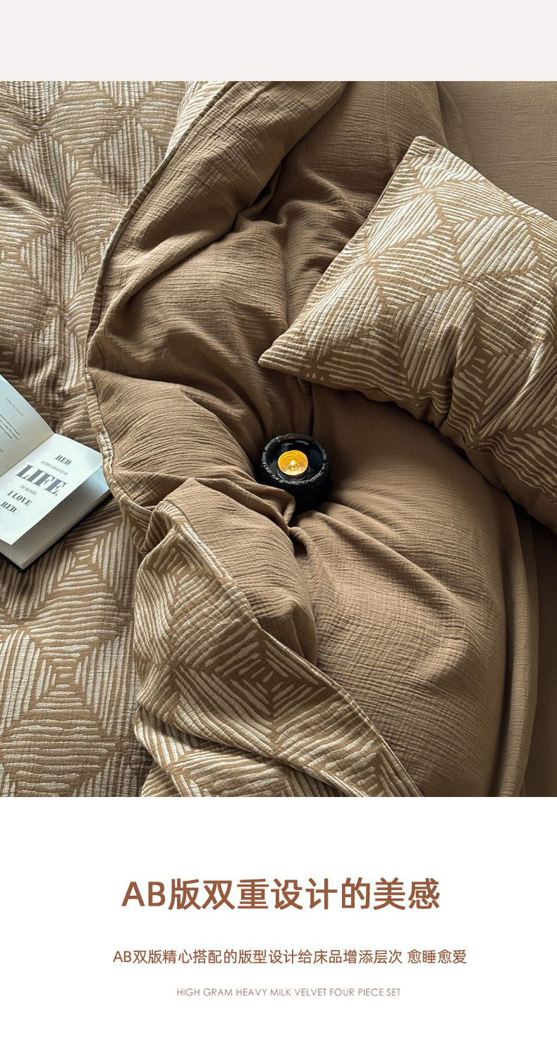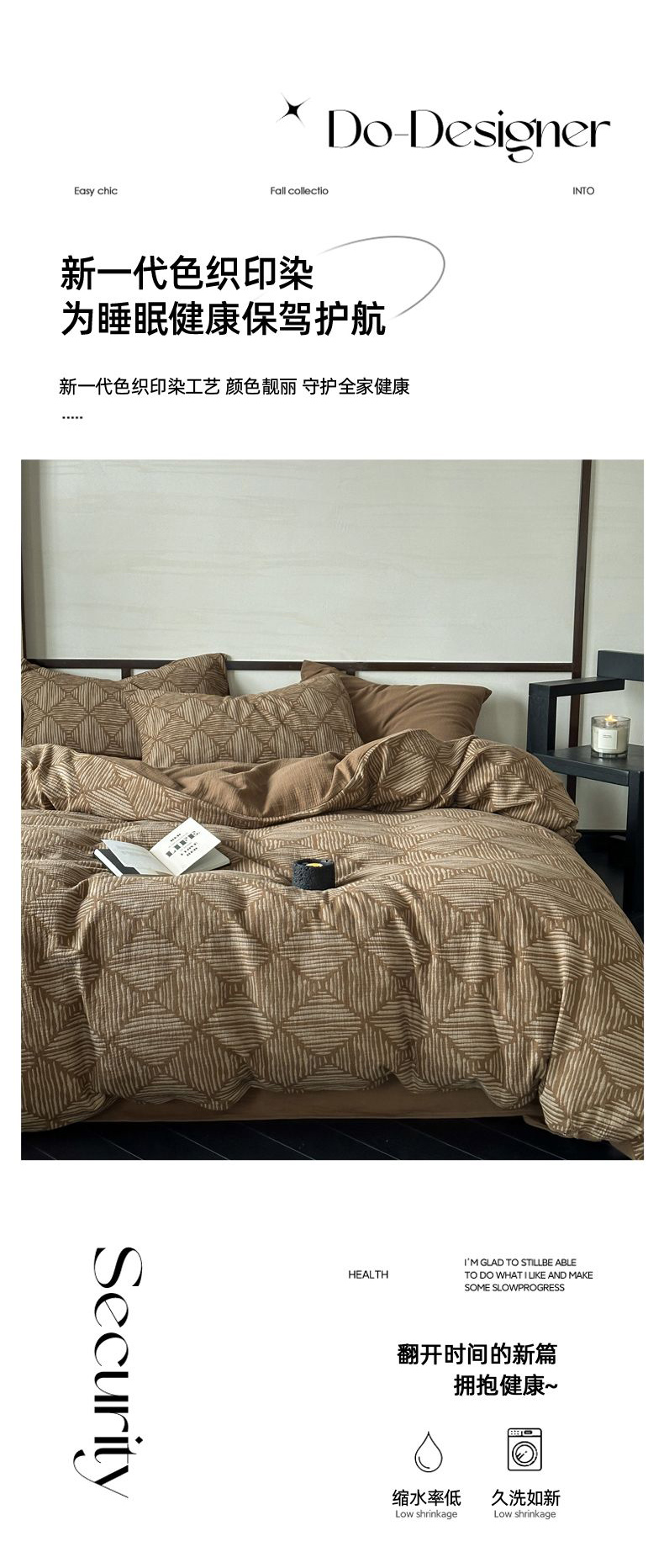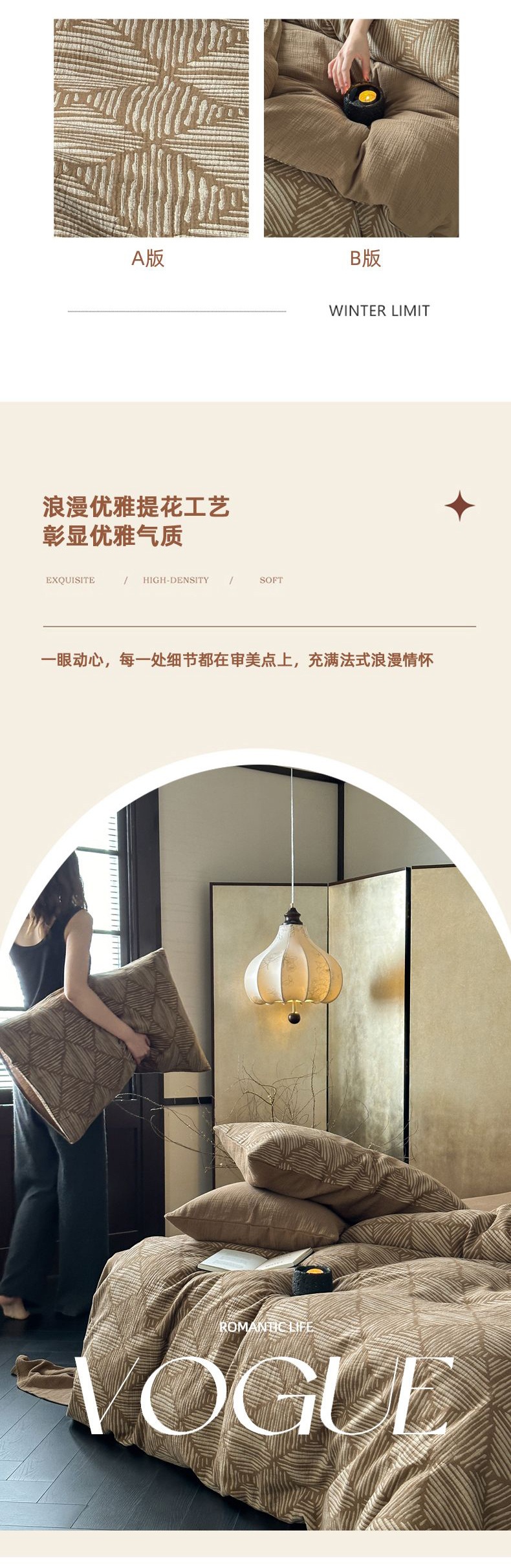 (总)山舍家居 2025新款全棉纯棉特种彩纱针刺子提花四件套-费尔岛的故事-深巧棕,费尔岛的故事-深巧棕