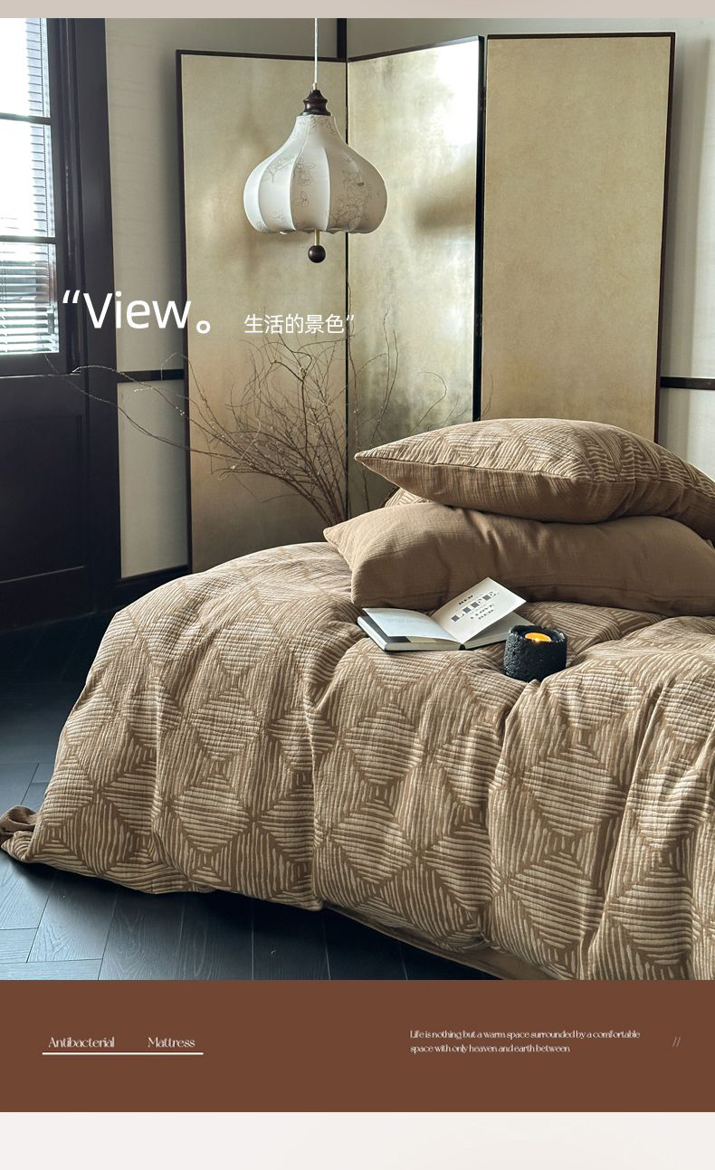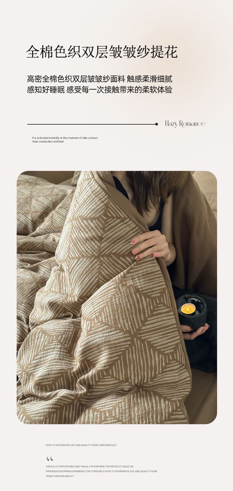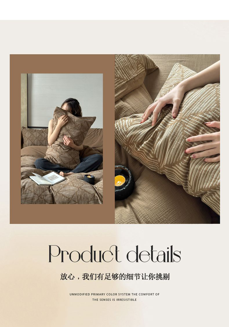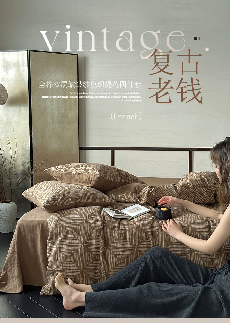 山舍家居 2024新款复古双层皱皱纱色织提花四件套 素初