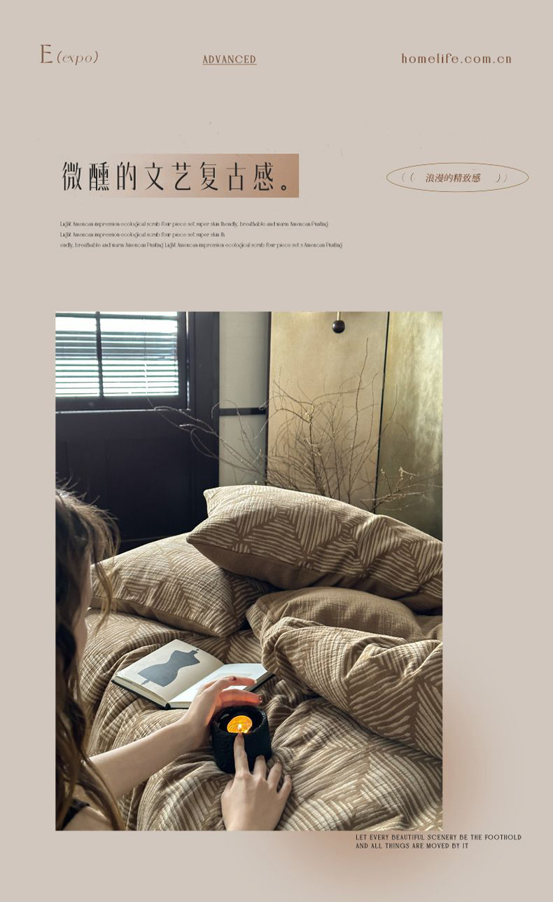 (总)山舍家居 2025新款全棉纯棉特种彩纱针刺子提花四件套-费尔岛的故事-卡其棕,费尔岛的故事-卡其棕