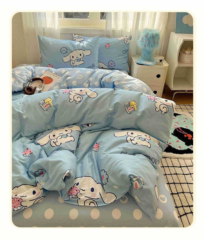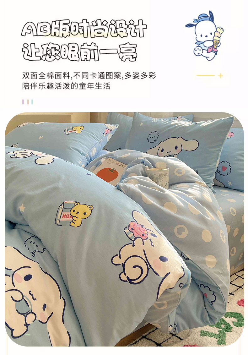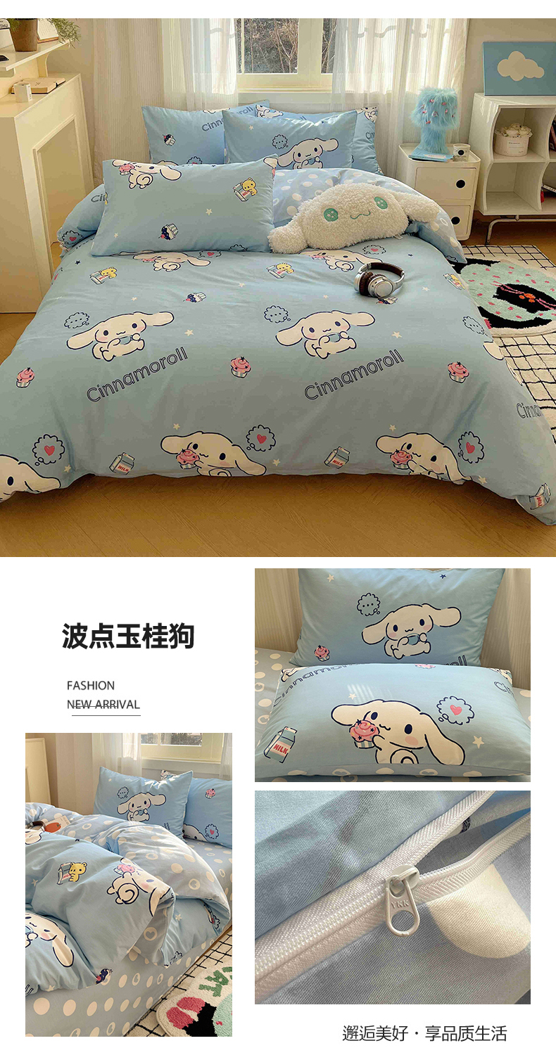 星座家纺 2025新款40s全棉卡通印花四件套 波点玉桂狗