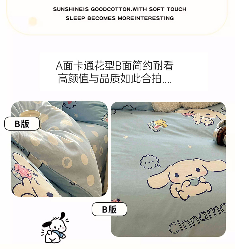 商品名称:星座家纺 2025新款40s全棉卡通印花四件套 波点玉桂狗