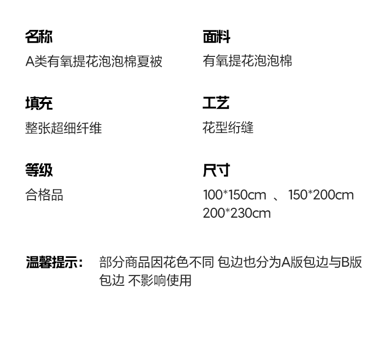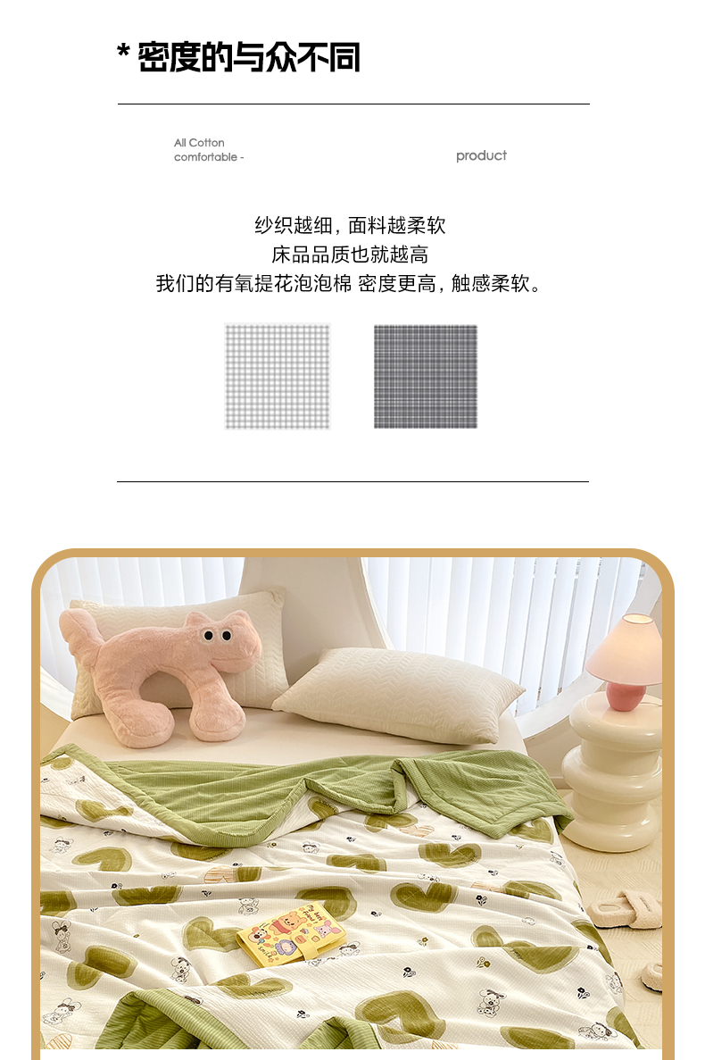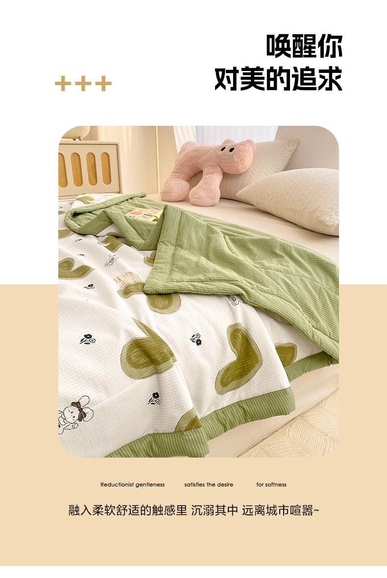 商品名称:金麦 2024新款A类有氧提花泡泡棉夏被 甜心绿