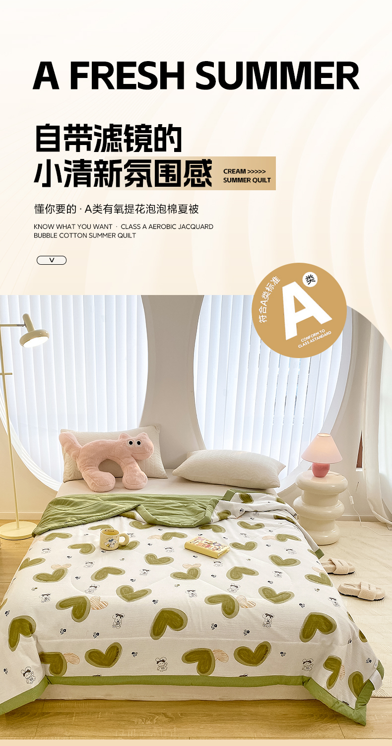 金麦 2024新款A类有氧提花泡泡棉夏被 甜心绿