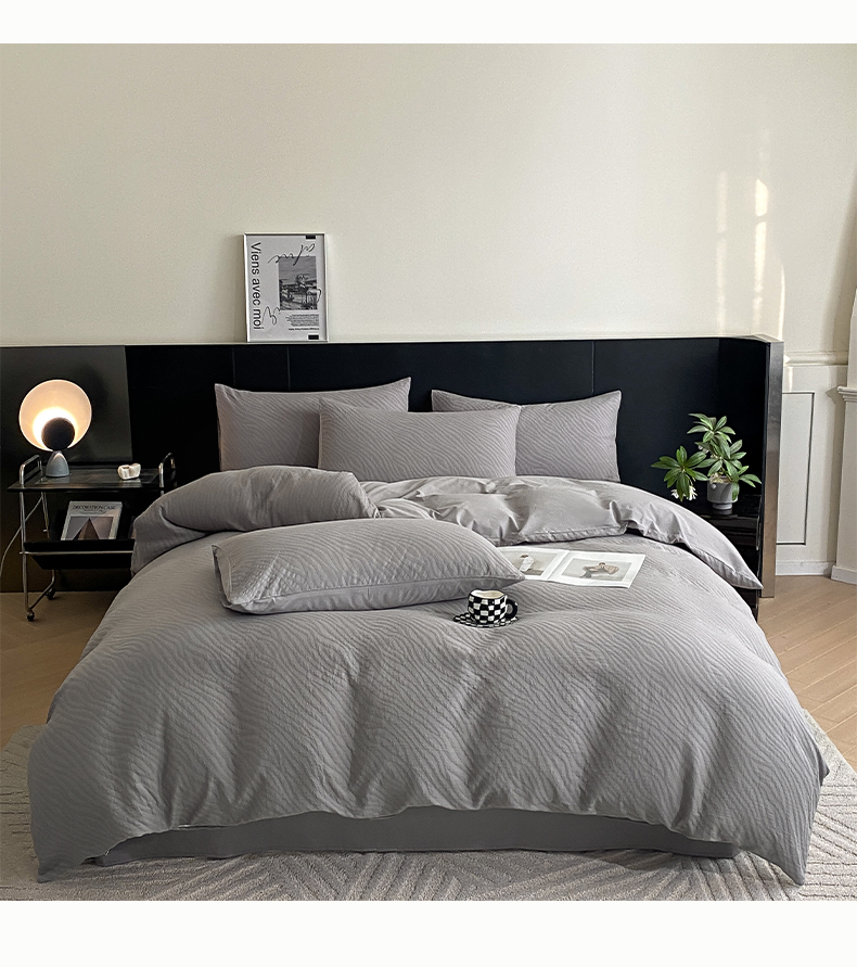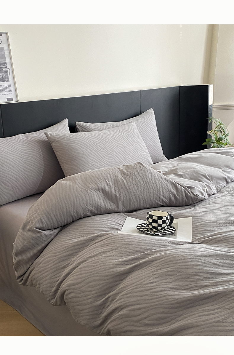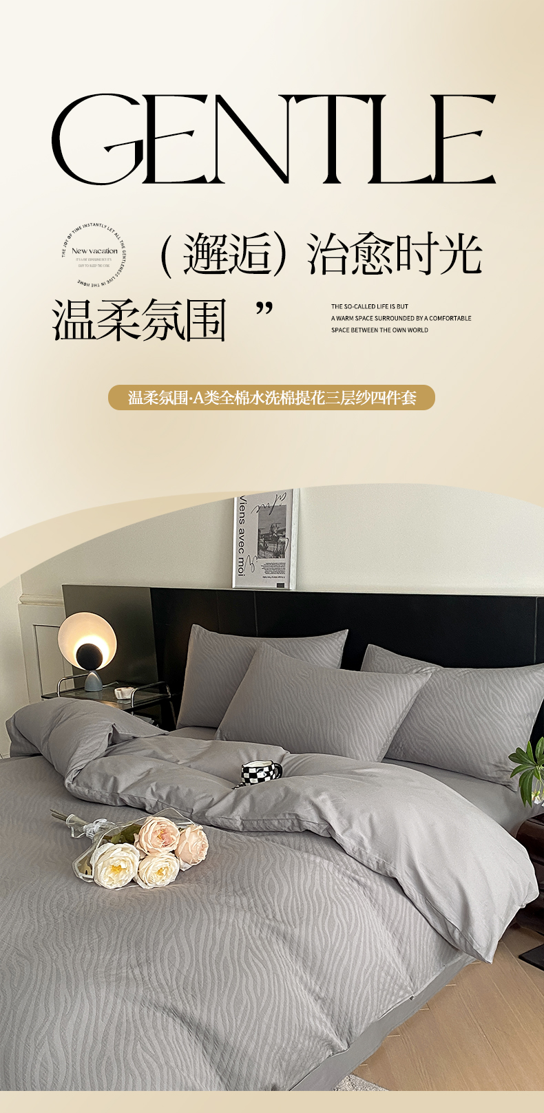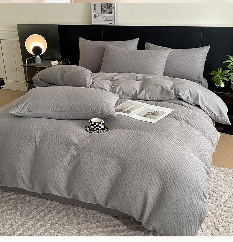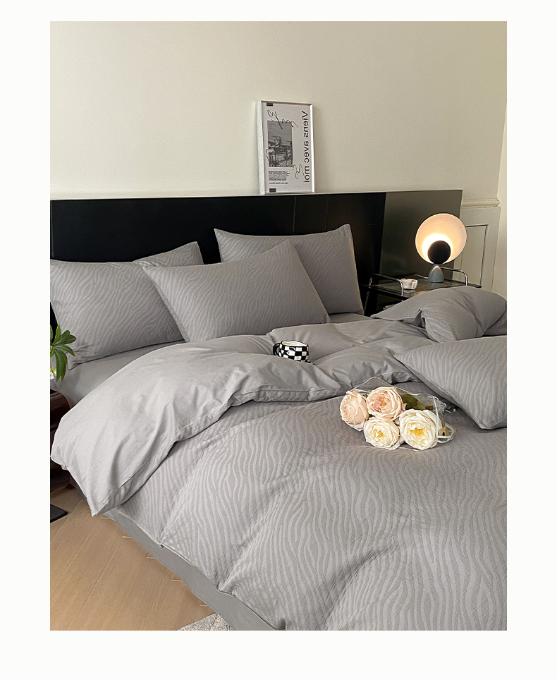 当前位置: 91家纺网 > 商品网购 > 床品套件 > 四件套 > 全棉普通四件套 > 莱登卡奴 2024新款全棉A类水洗棉提花三层纱四件套 斑尔尼-灰