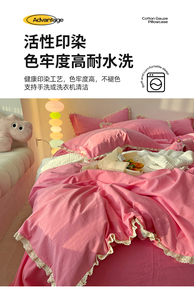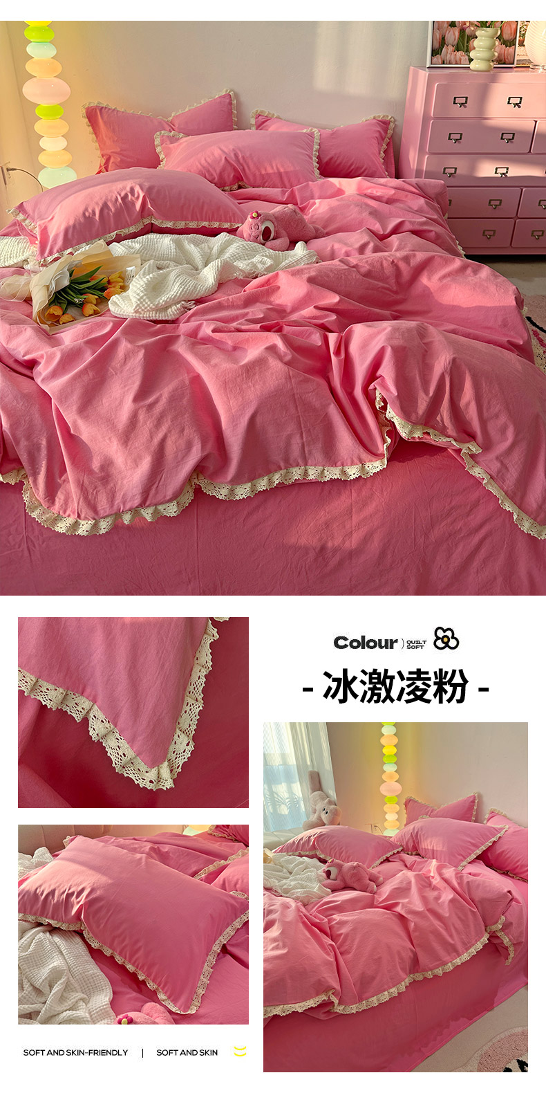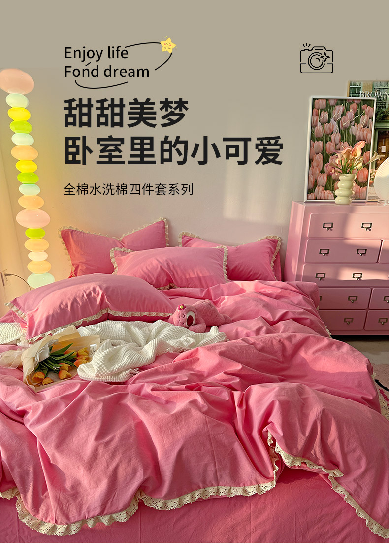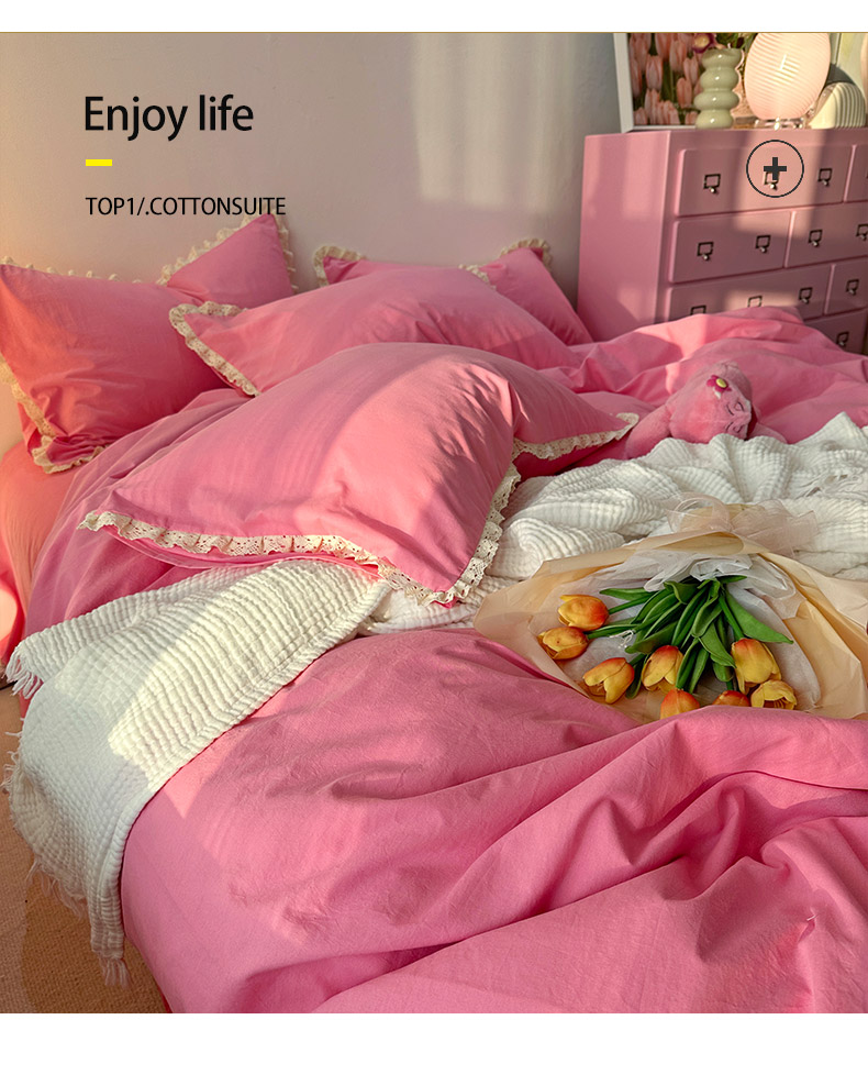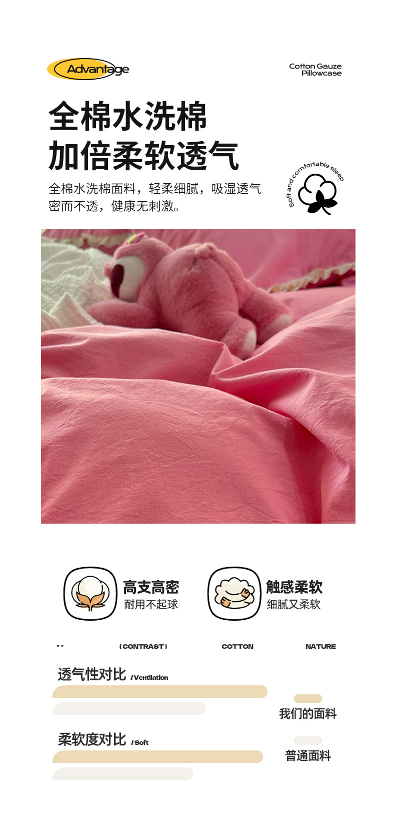 千朵 2024新款全棉水洗棉四件套 冰激凌粉