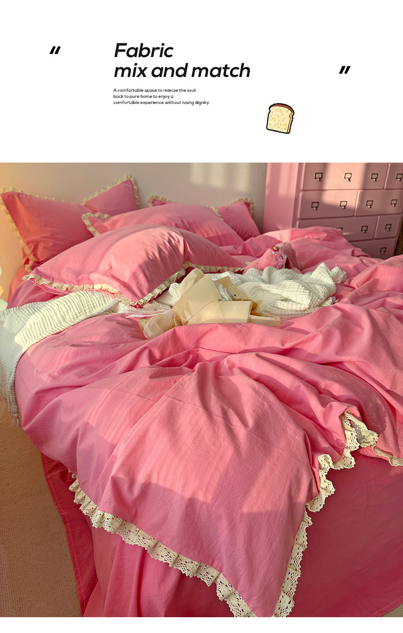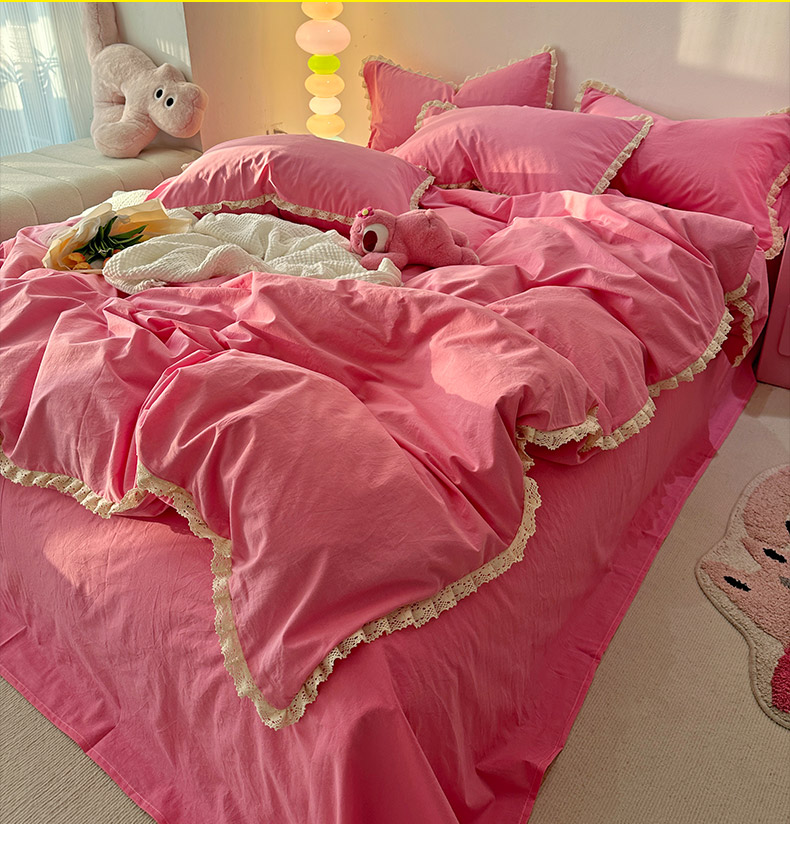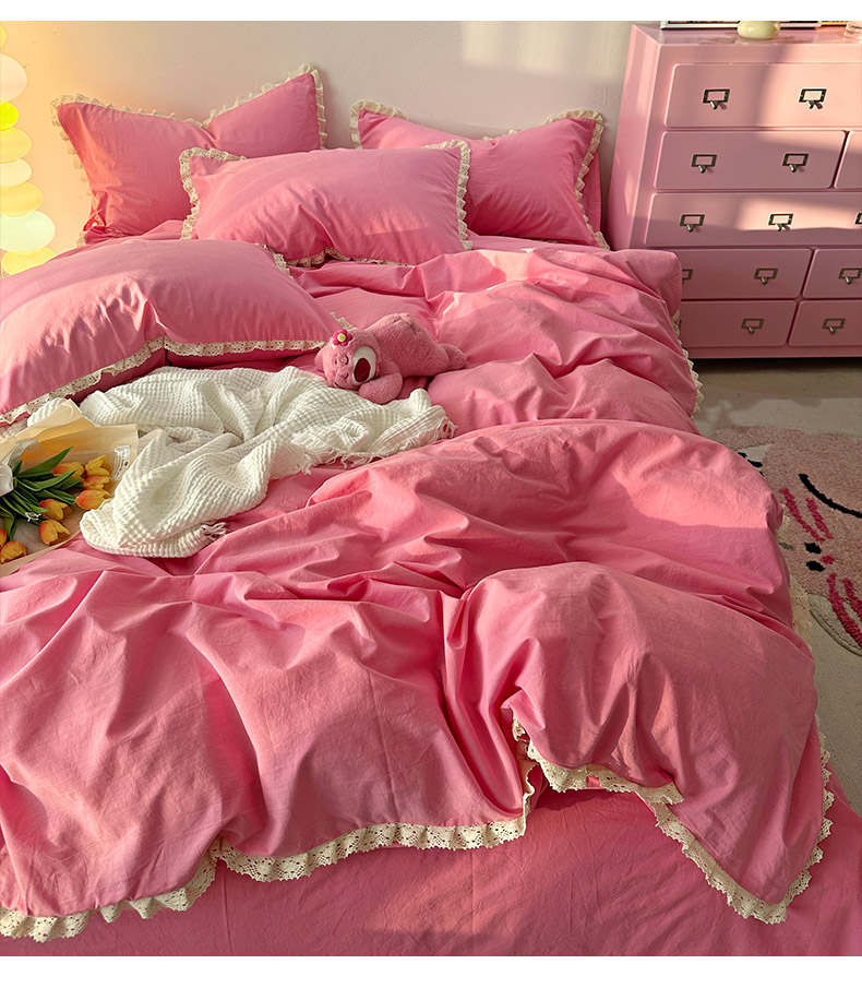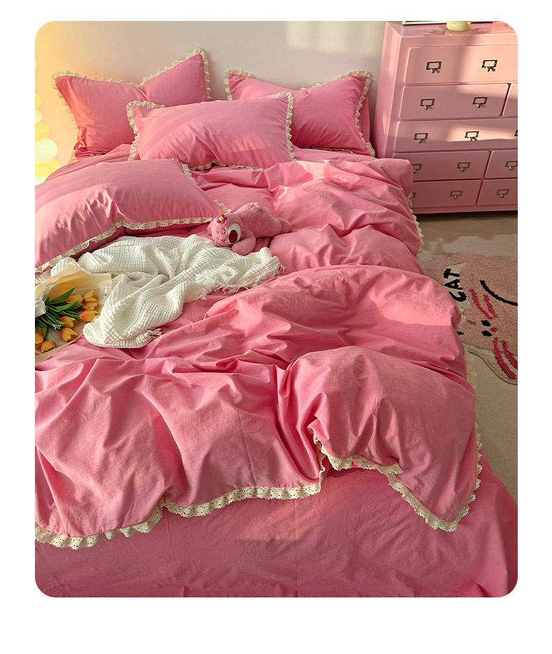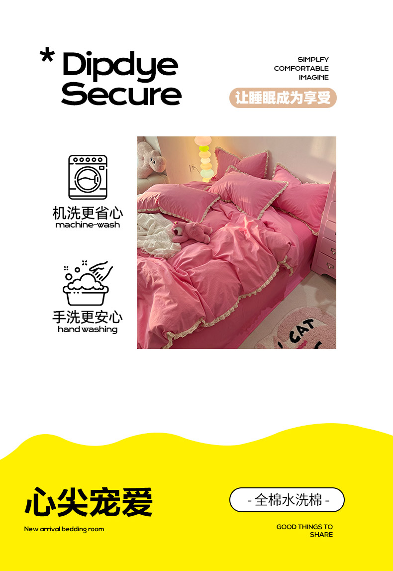 千朵 2024新款全棉水洗棉四件套 冰激凌粉