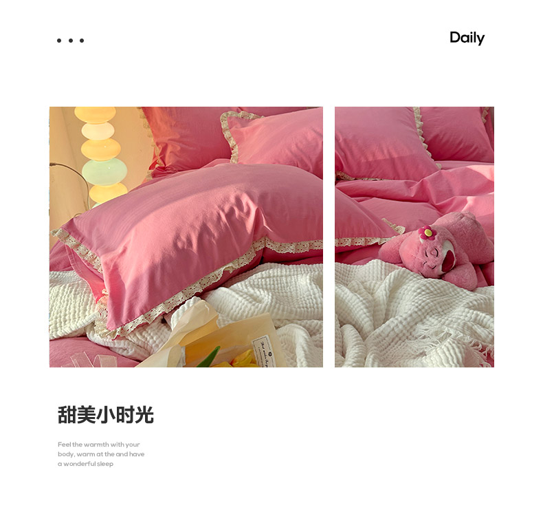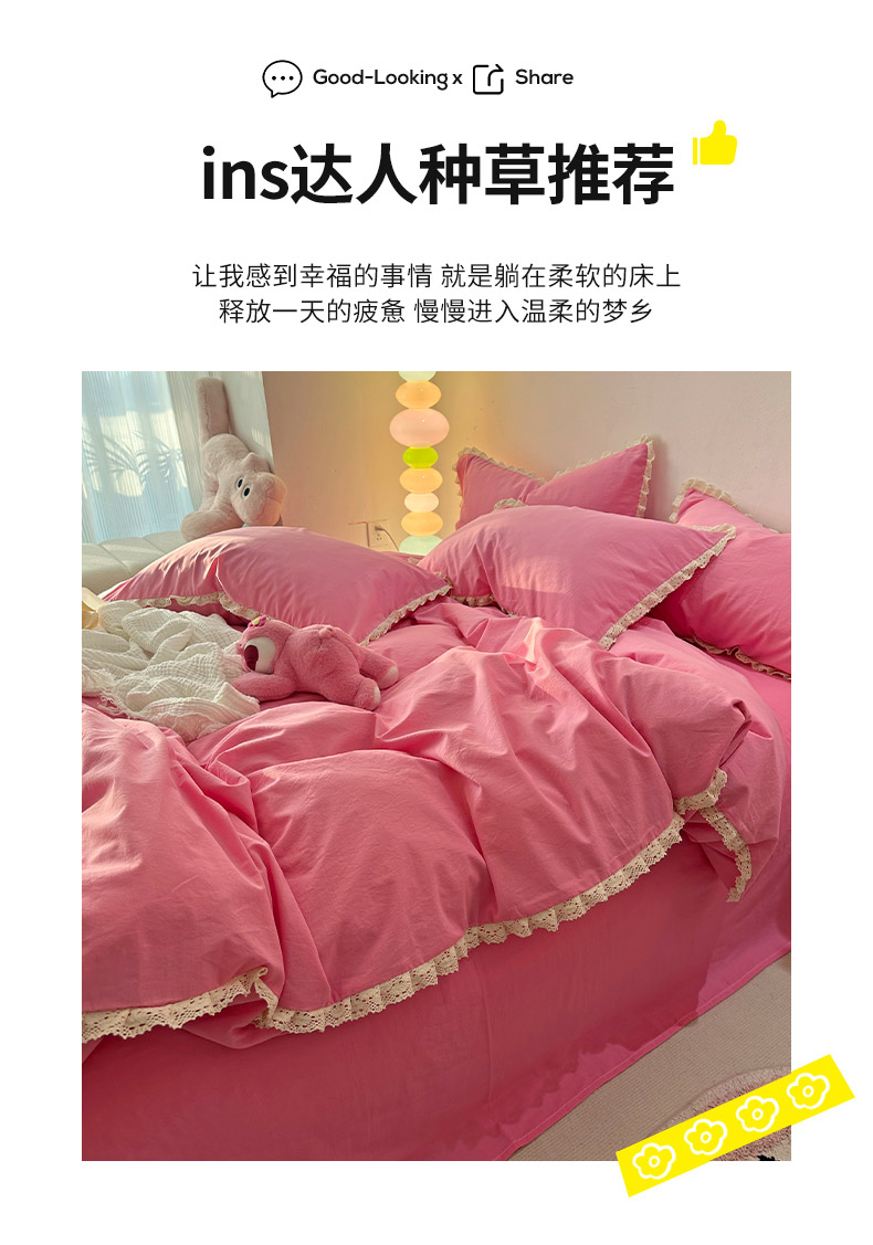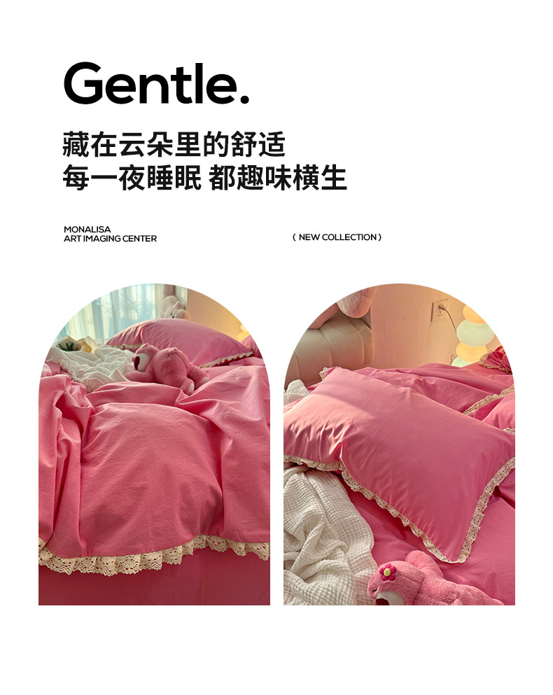 商品名称:千朵 2024新款全棉水洗棉四件套 冰激凌粉