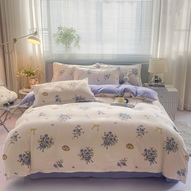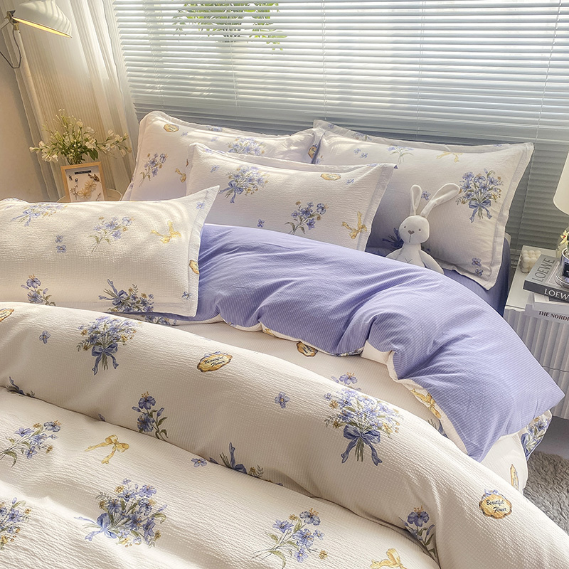 商品名称:寐时代 2024新款A类有氧提花水洗泡泡棉四件套 小苍兰