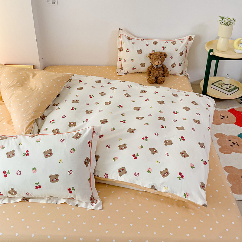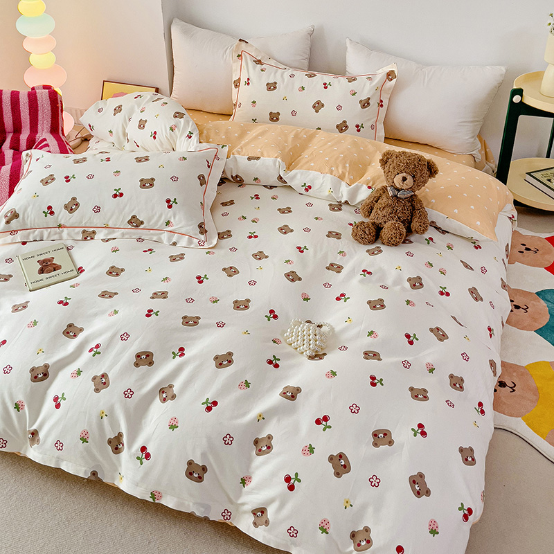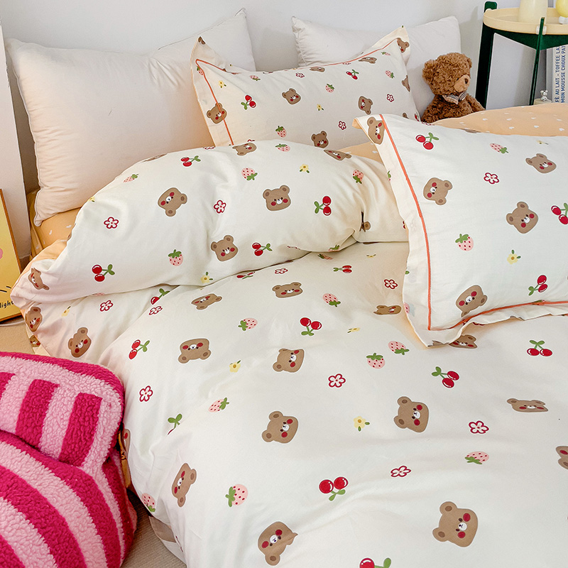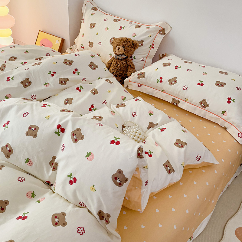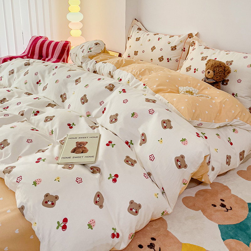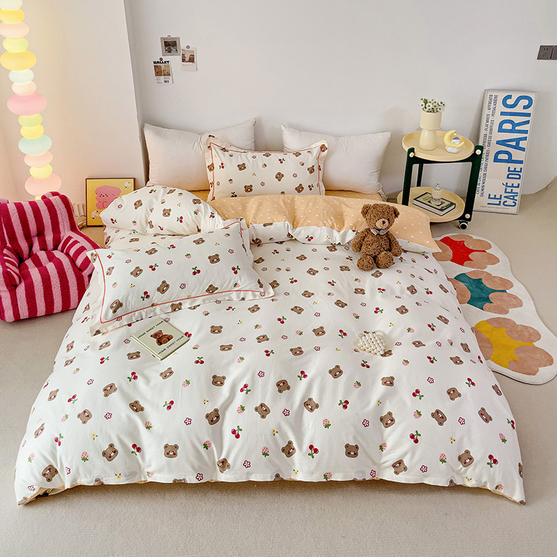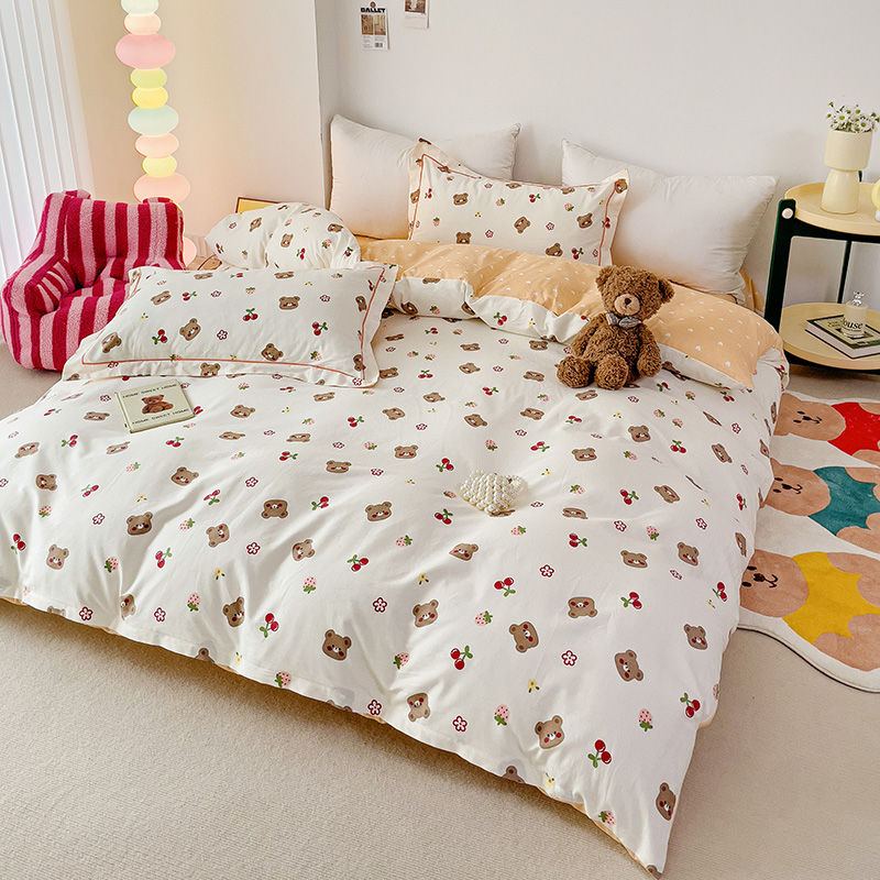 商品名称:云锦家居 2024新款13070纯棉印花吊边款一字绣四件套 调皮熊
