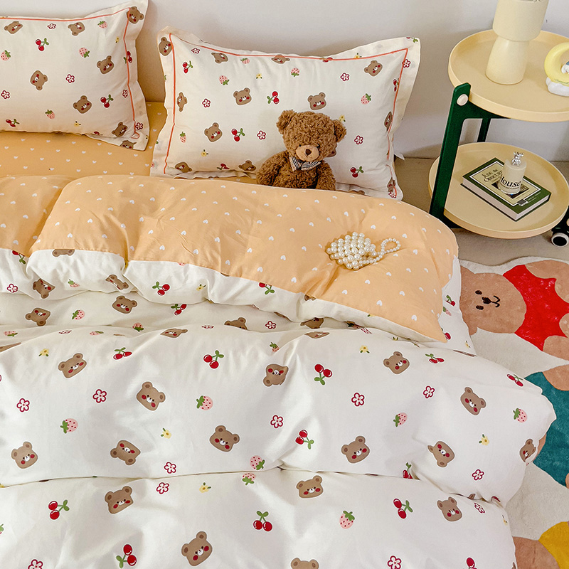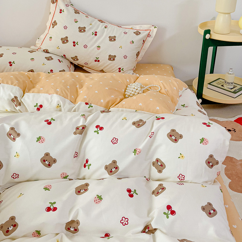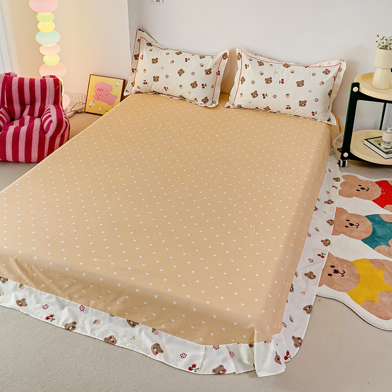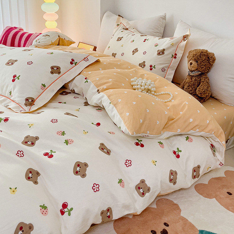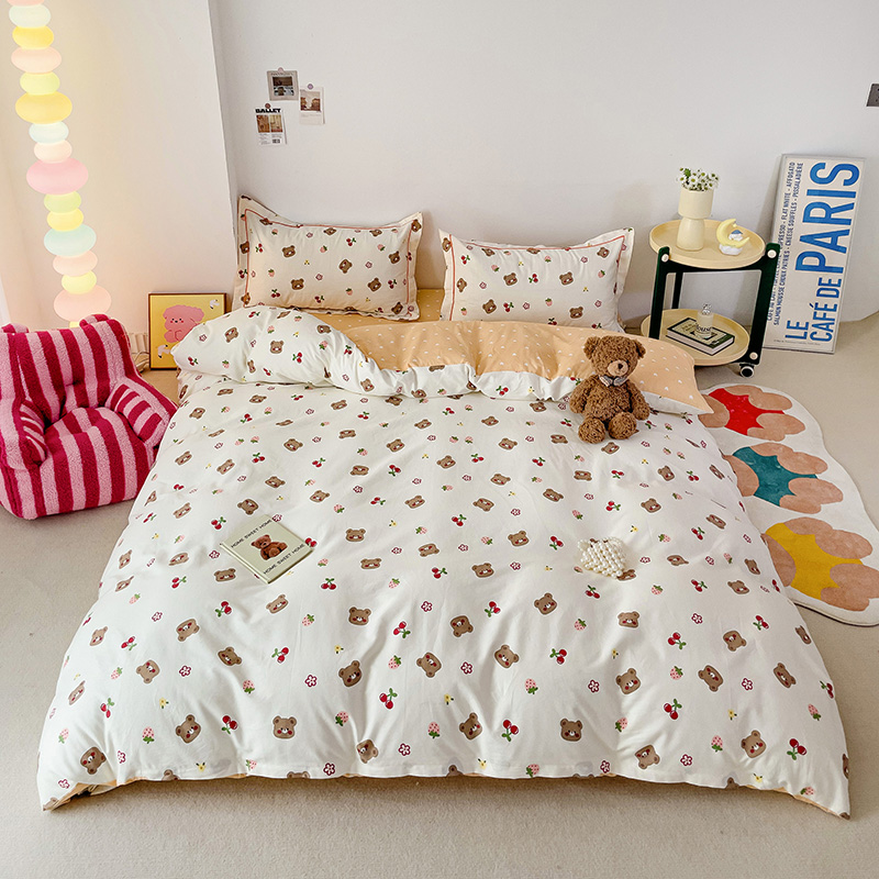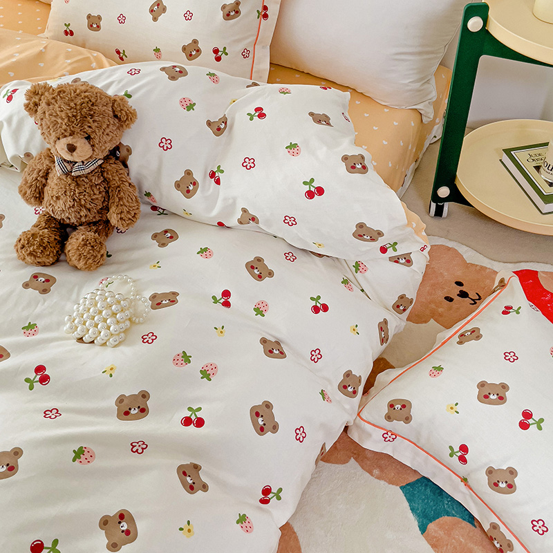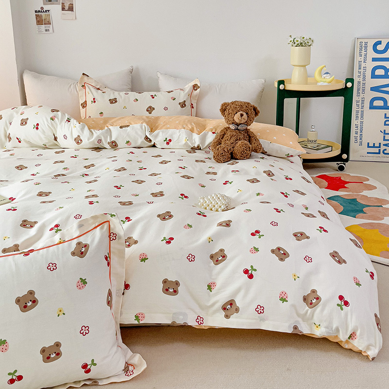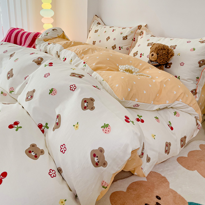 商品名称:云锦家居 2024新款13070纯棉印花吊边款一字绣四件套 调皮熊