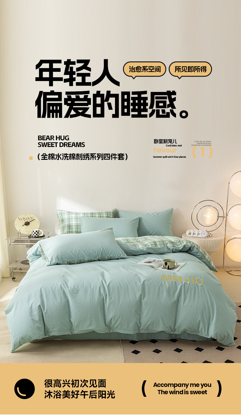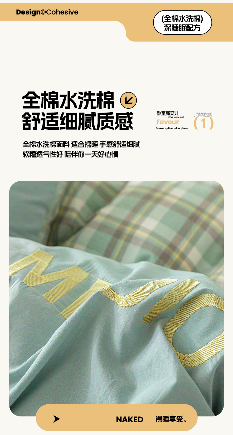 当前位置: 91家纺网 > 商品网购 > 床品套件 > 四件套 > 全棉普通四件套 > 寐眠 2024新款全棉水洗棉刺绣四件套 海盐薄荷