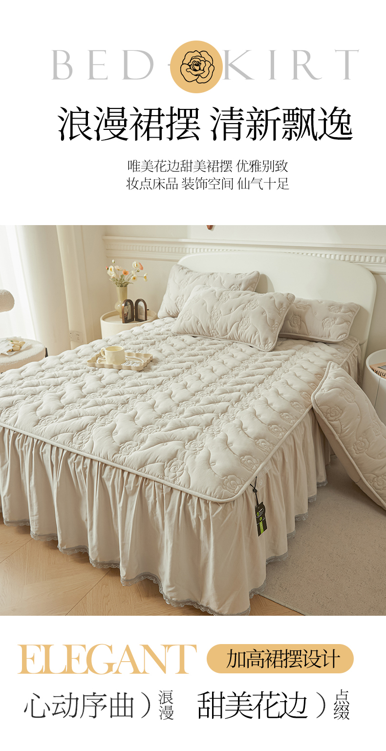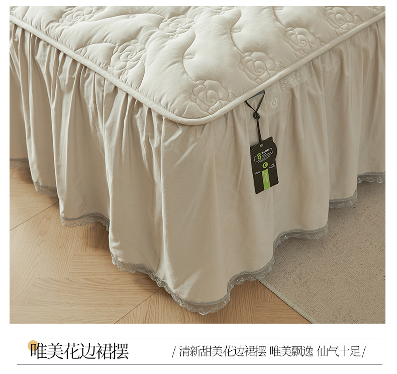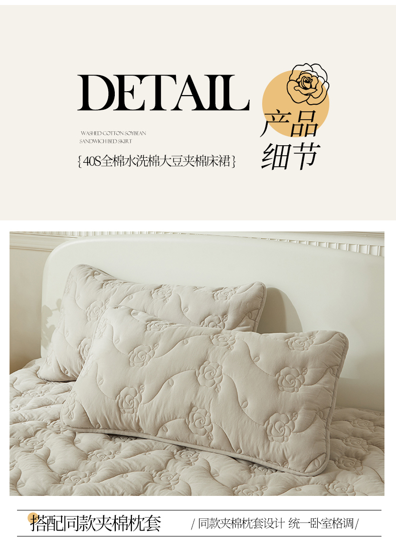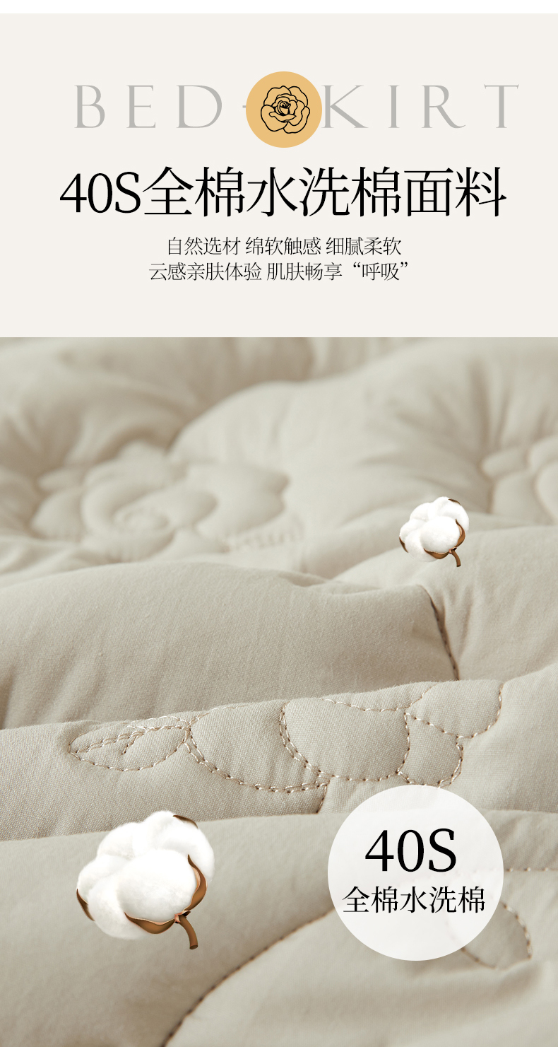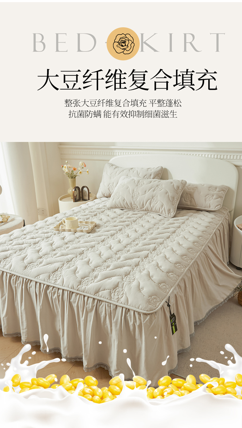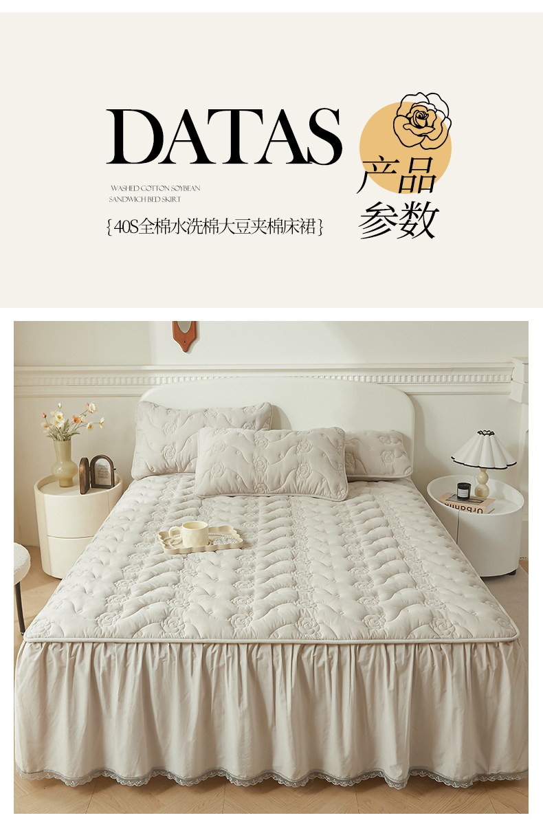 商品名称:3C 2024新款玫瑰全棉水洗棉大豆夹棉床裙 烟雾灰