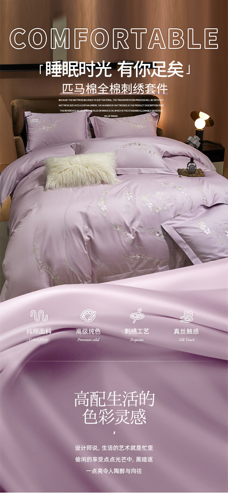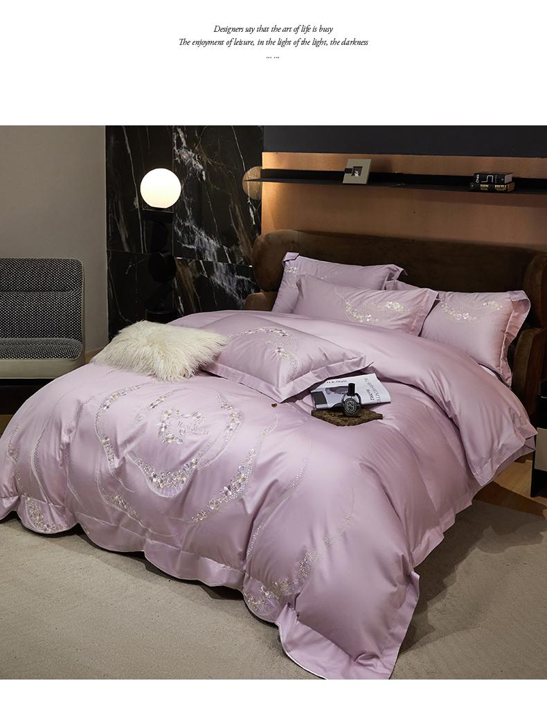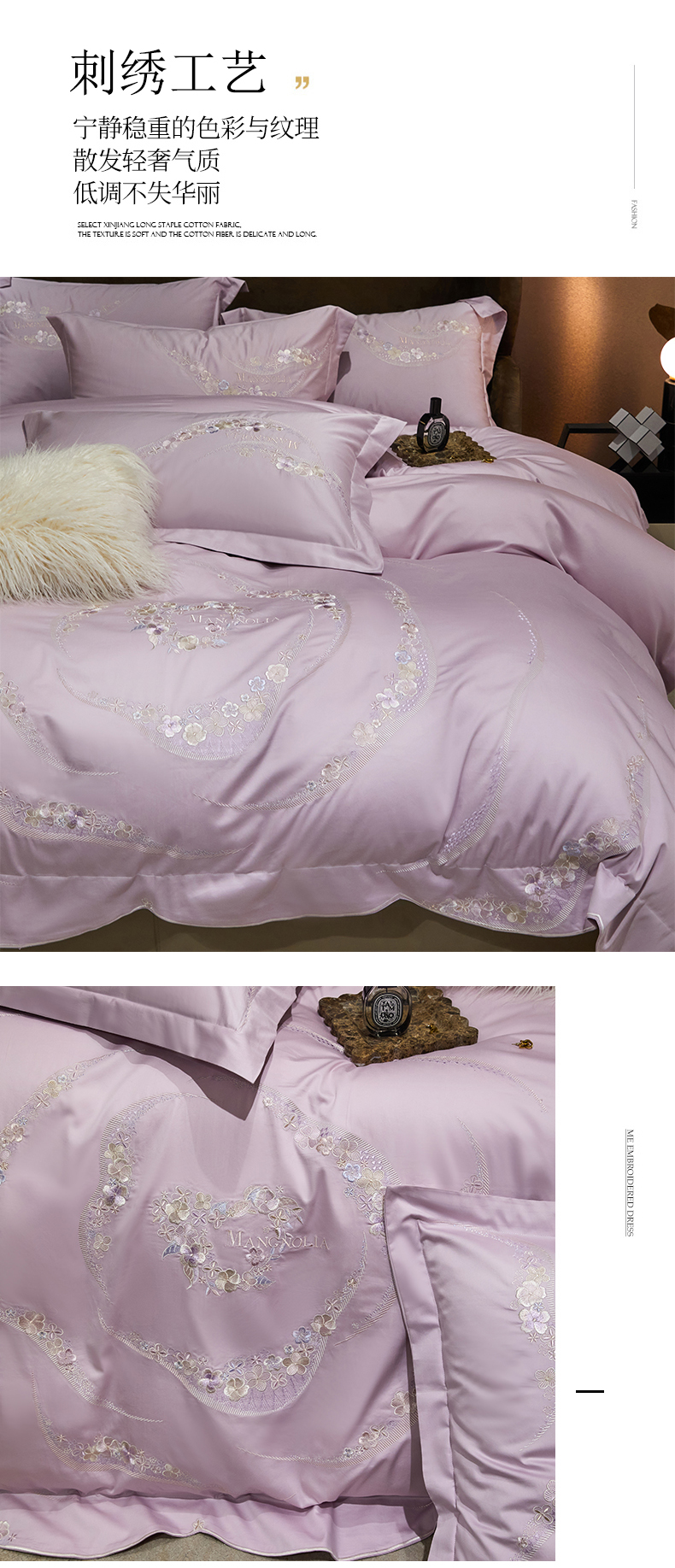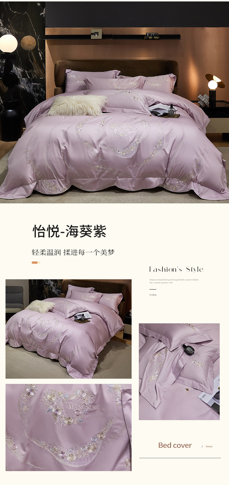 宏羽纺家纺 2024新款高支高密全棉绣花工艺四件套-怡悦 怡悦 海葵紫