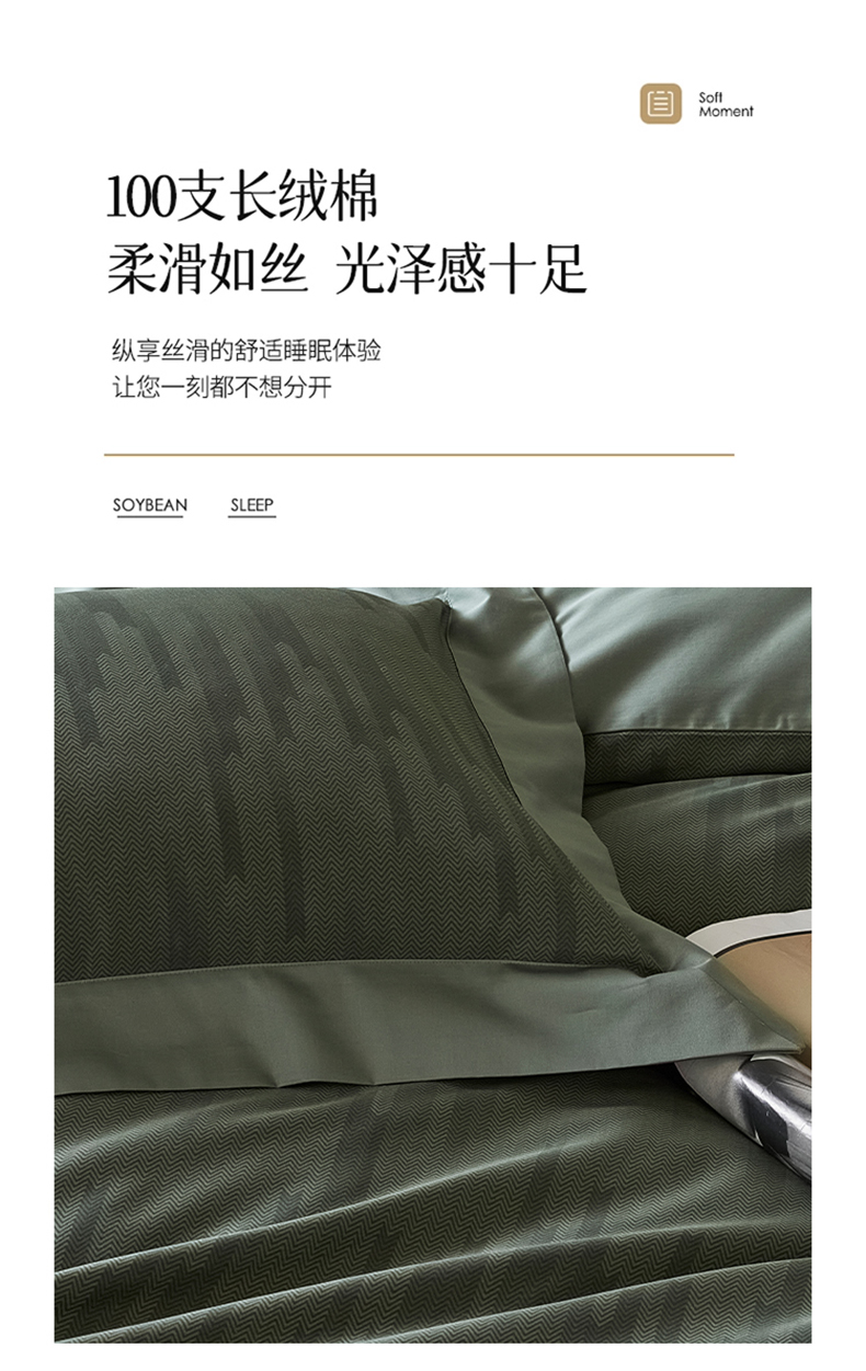 商品名称:梦享生活家居 2024新款100支长绒棉贡缎轻奢风四件套-洛克 洛克-复古中绿