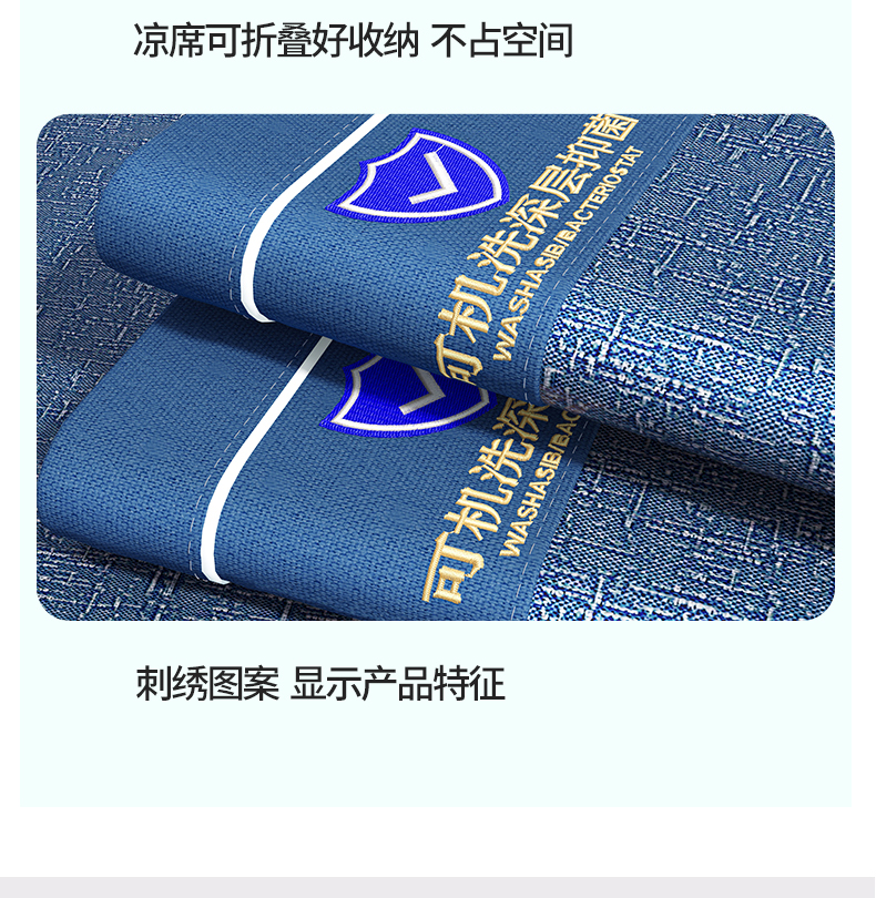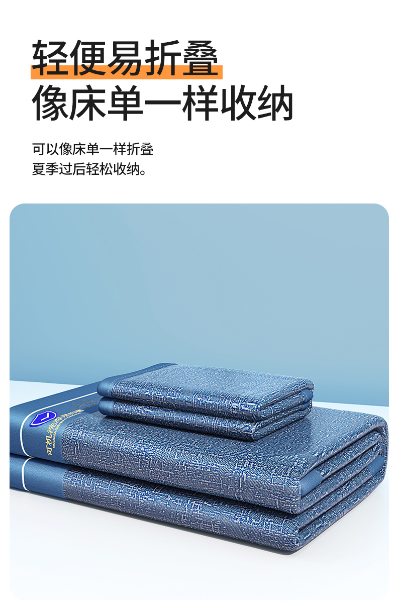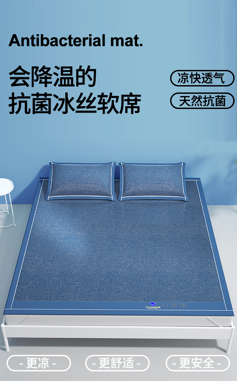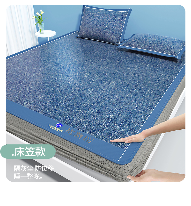 商品名称:席佬大 2025新款可机洗抗菌除螨冰藤席绑带款 床笠款 凉席 深海蓝(床笠款)