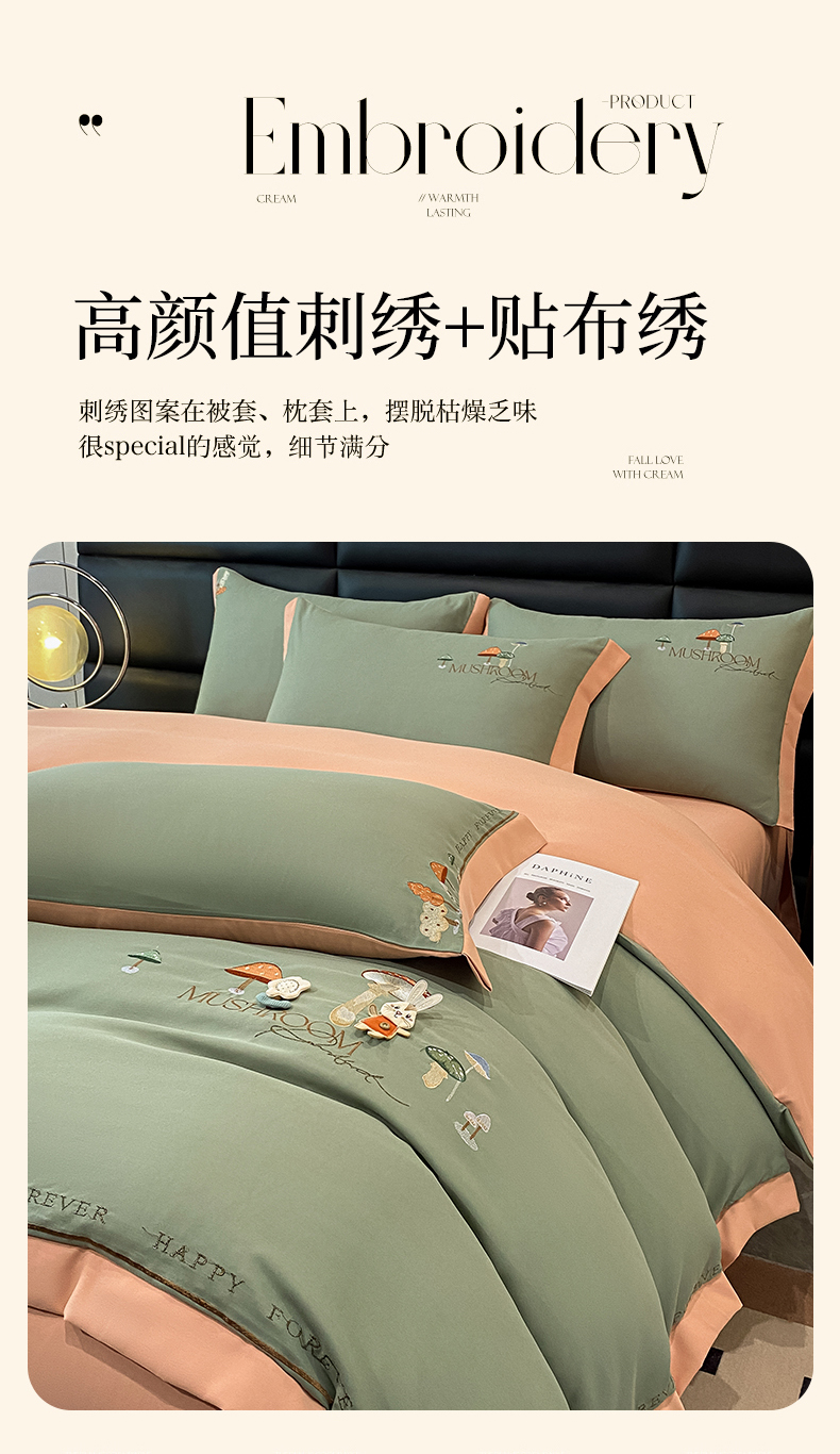 (总)七七家纺 2025新款刺绣款牛奶绒四件套-织梦系列,织梦-粉,织梦-豆沙,织梦-黄,织梦-水绿,织梦-天蓝,织梦-紫