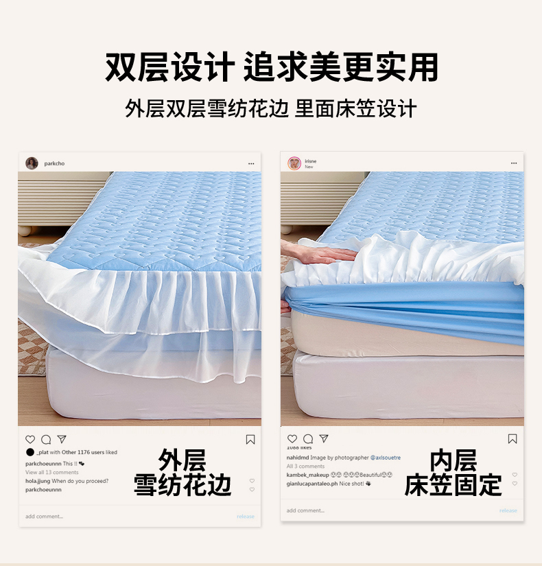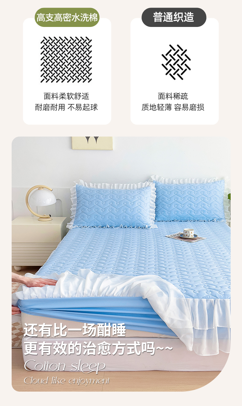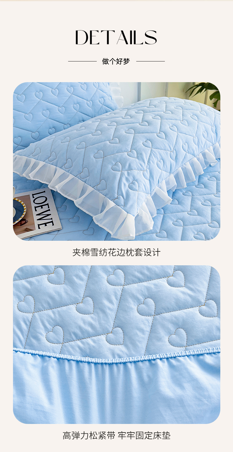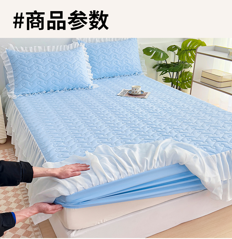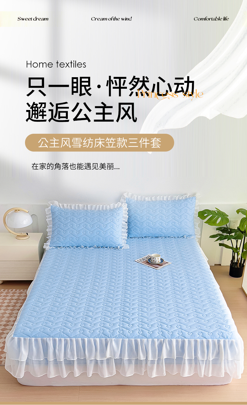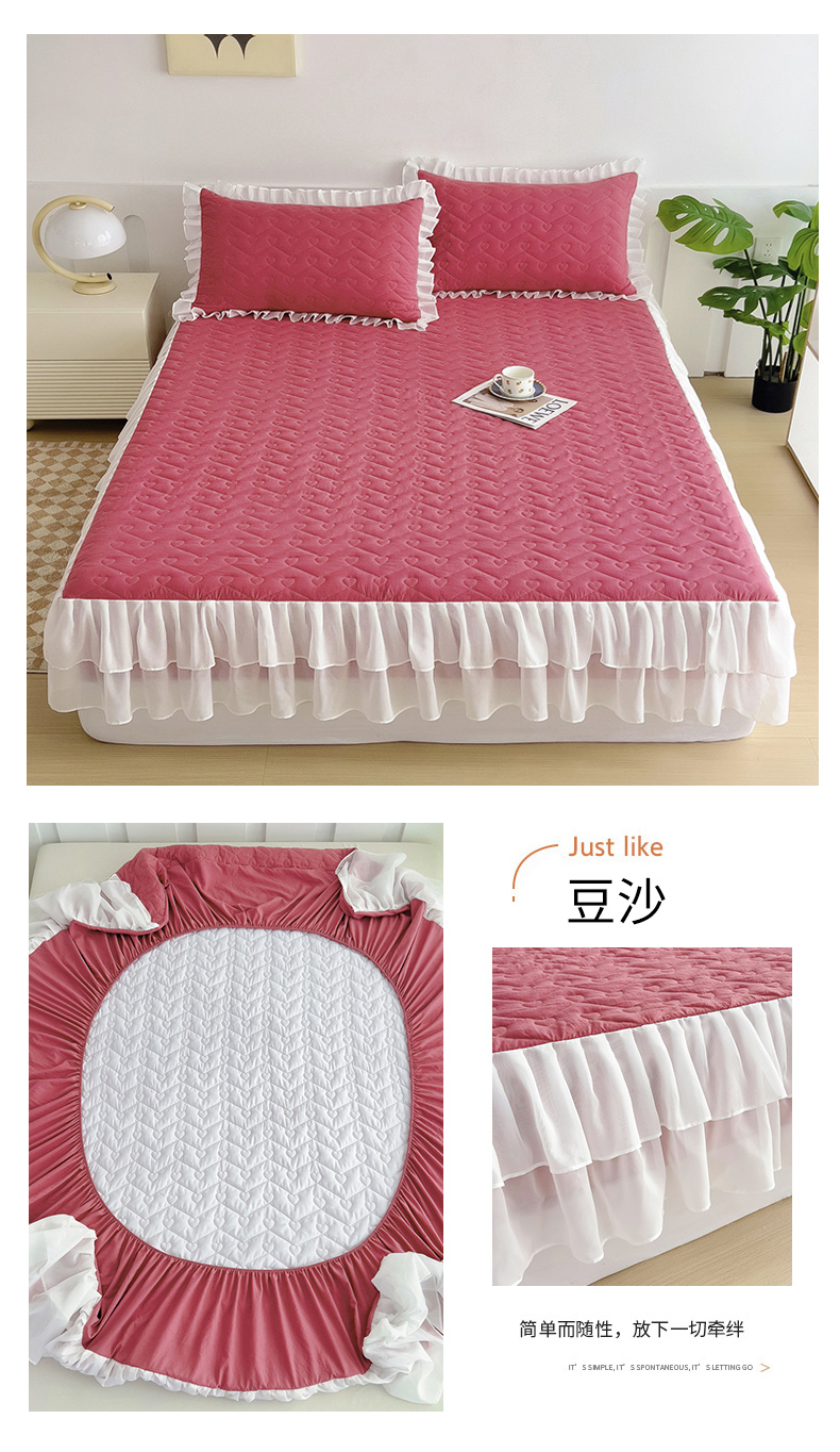 (总)屹成家纺2025新款水晶绒夹棉绗缝蕾丝床裙三件套(塞纳河畔)床裙单件起售价不低于105元,大红,豆沙,翡翠绿,粉玉,橄榄绿,蔚蓝,银灰