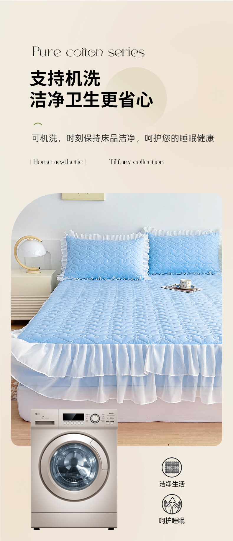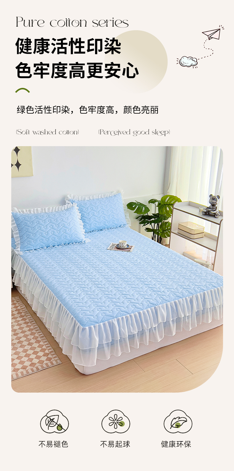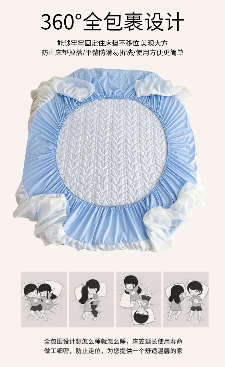 商品名称:屹成 2024新款水洗棉雪纺丽莎款单床笠 天蓝