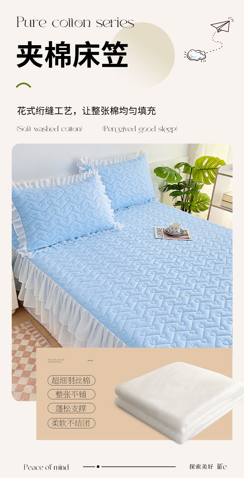 (总)屹成 2024新款高密亲肤天竺棉款夹棉床笠,豆沙色,格调蓝,孔雀绿,经典灰,典雅驼,玳瑁紫