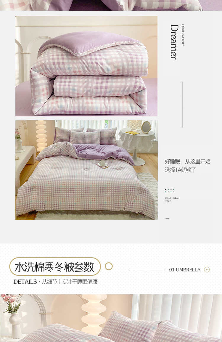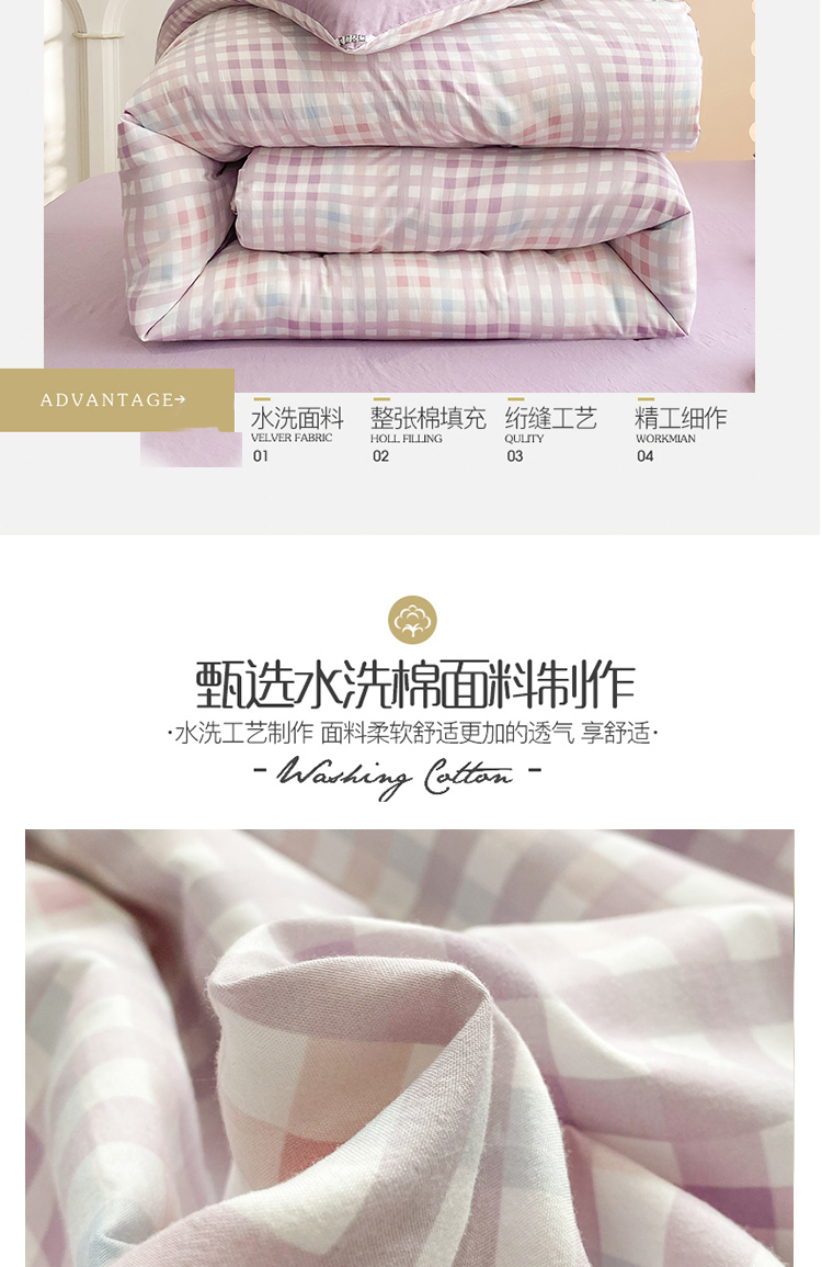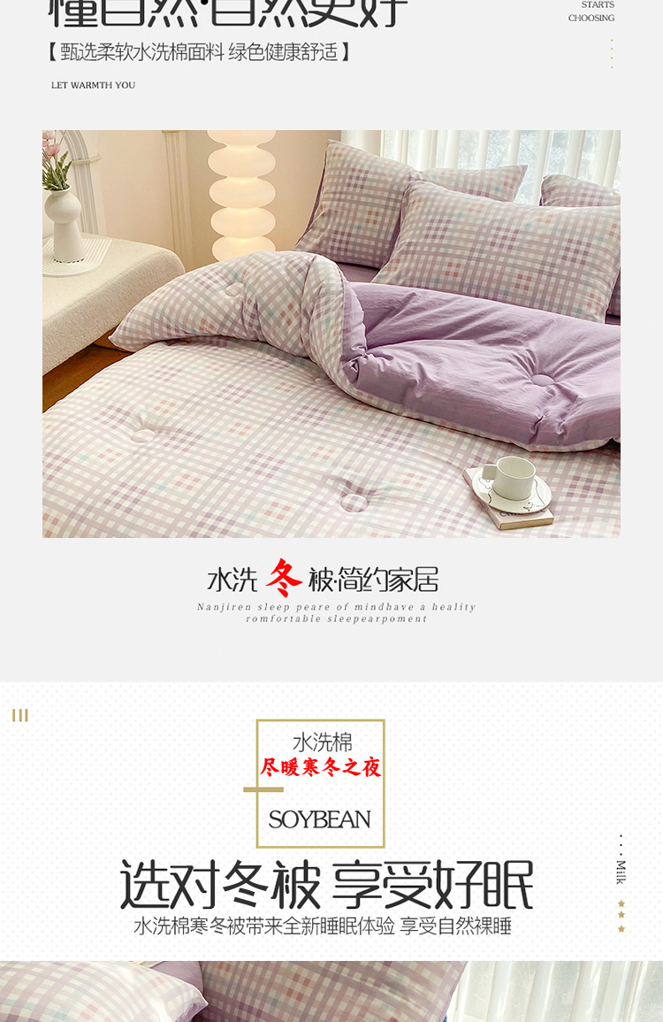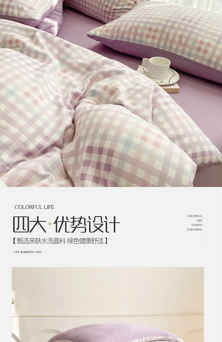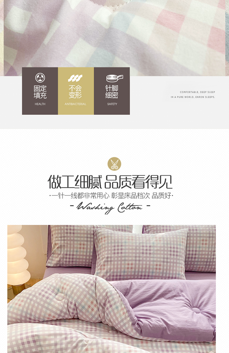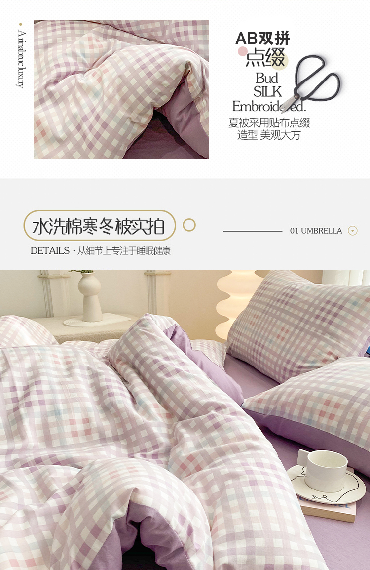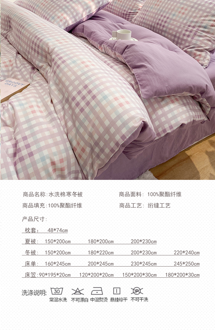 当前位置: 91家纺网 > 商品网购 > 床品套件 > 四件套 > 夏被四件套 > 啊雅家居 2025新款水洗棉条纹印花夏被冬被四件套-床单款 冬被 日系小格紫