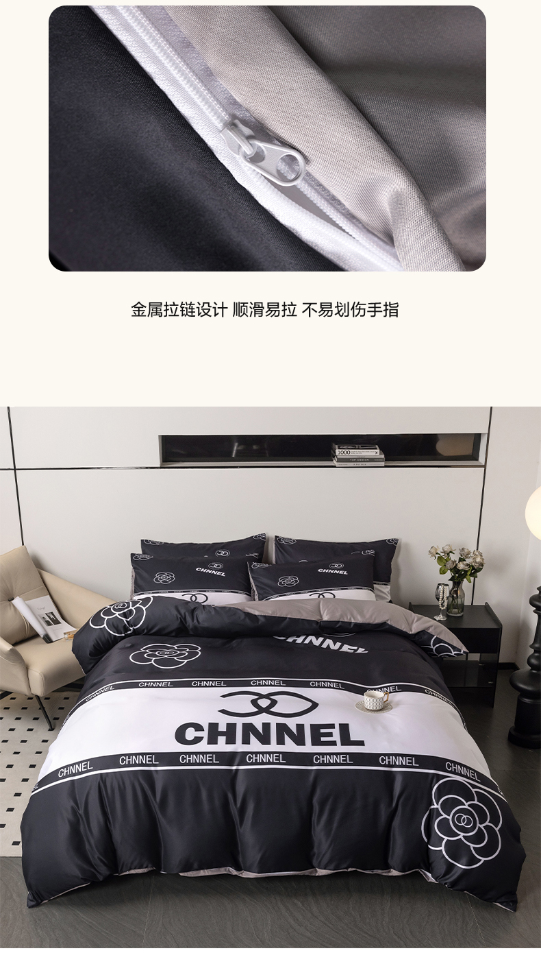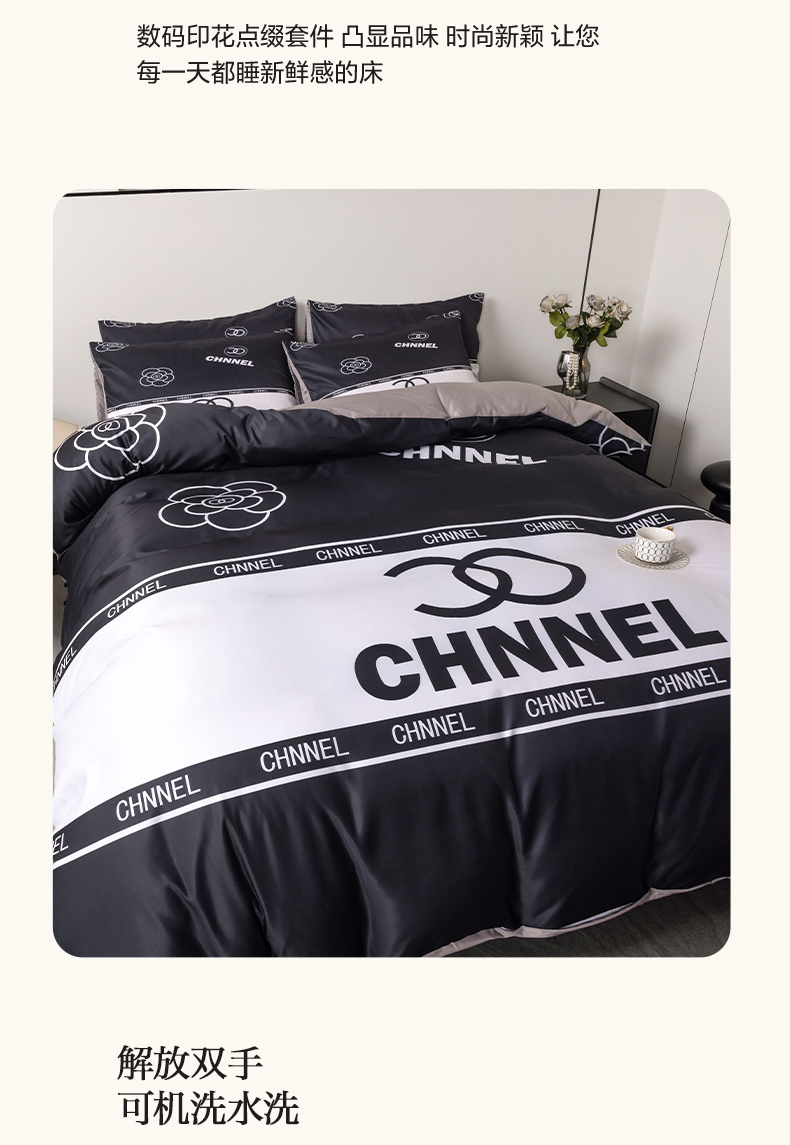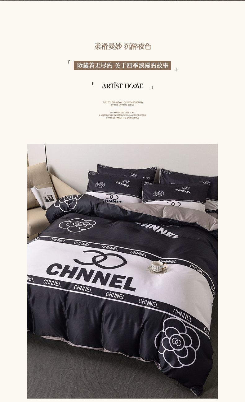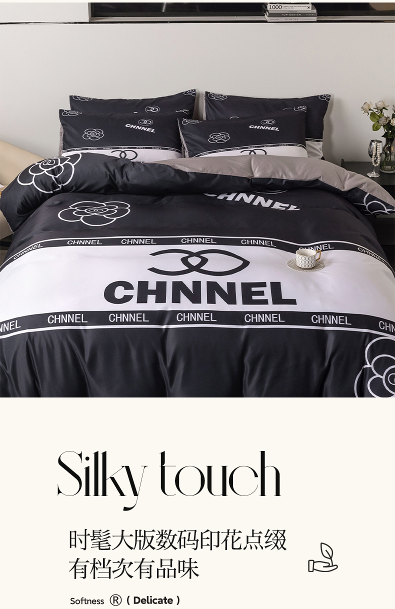 商品名称:摩卡 2024新款博主风水洗真丝四件套 小香-黑