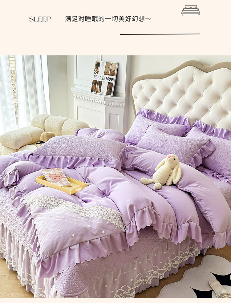 (总)漫布云 2025新款230g高克重韩版立体盘花牛奶蚕丝绒绣花四件套床裙款被套-洛丽塔系列,洛丽塔-嫩黄 ,洛丽塔-香芋紫,洛丽塔-珍珠粉, 洛丽塔-婴儿蓝