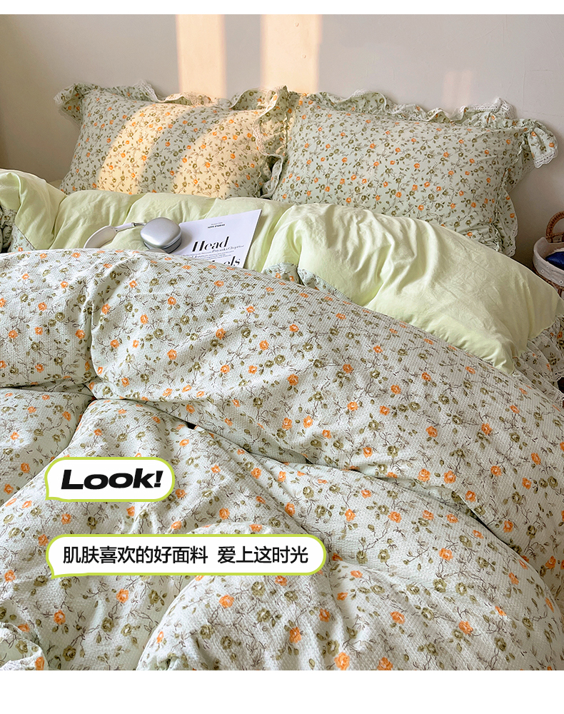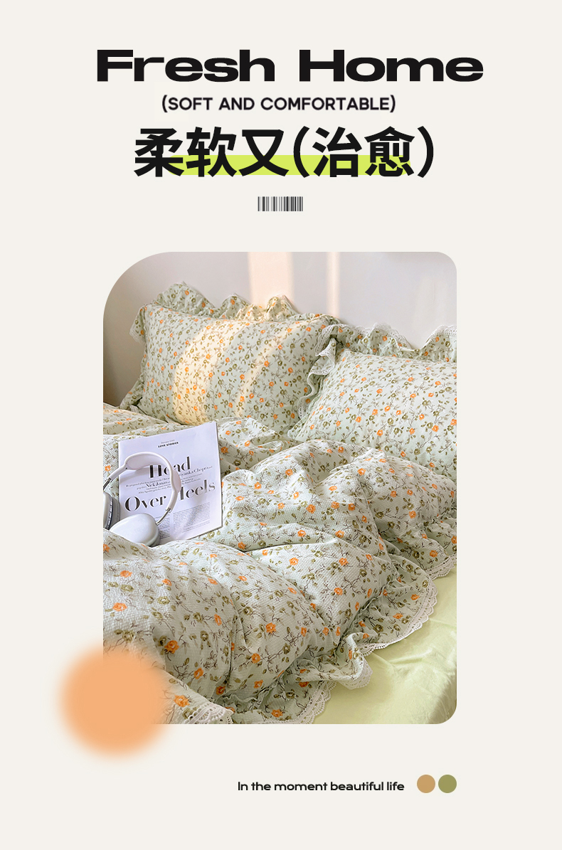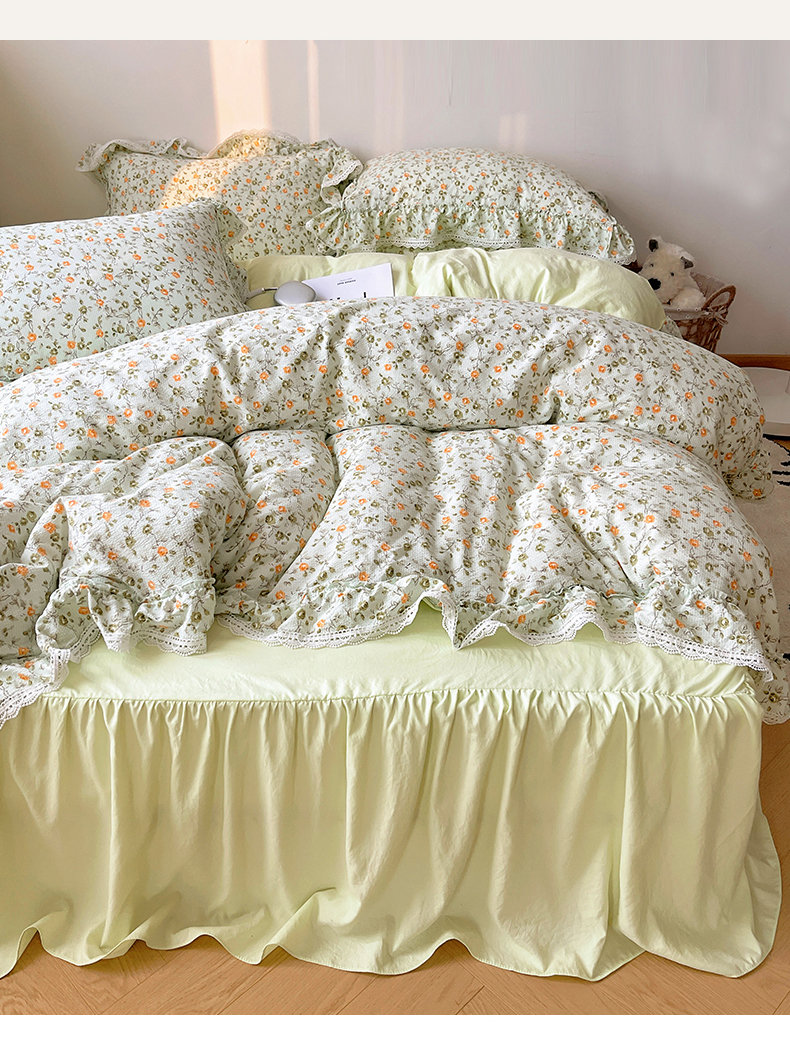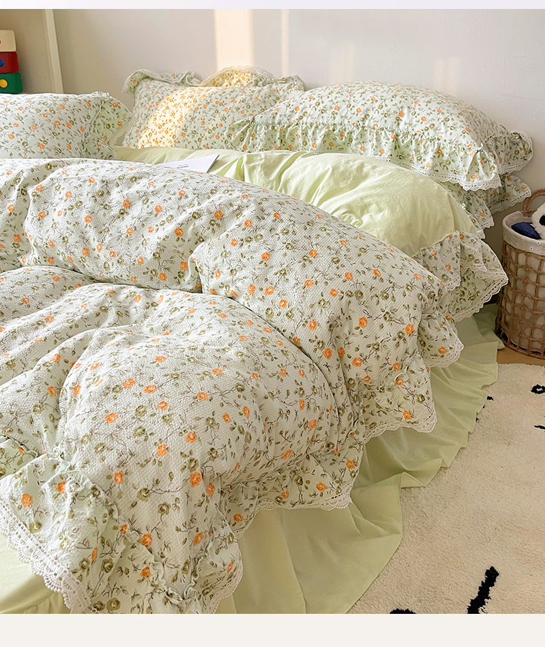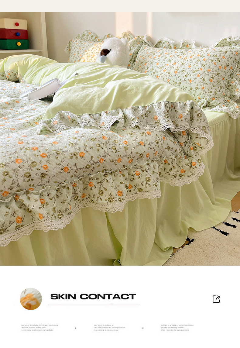 当前位置: 91家纺网 > 商品网购 > 床品套件 > 四件套 > 其它四件套 > 轻奢坊 2024新款韩系ins花边款清甜系列四件套 清甜绿