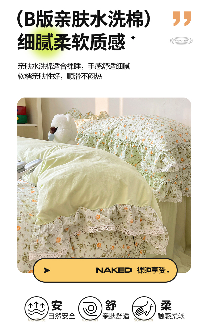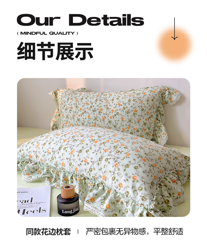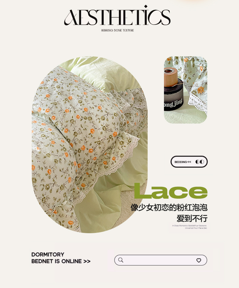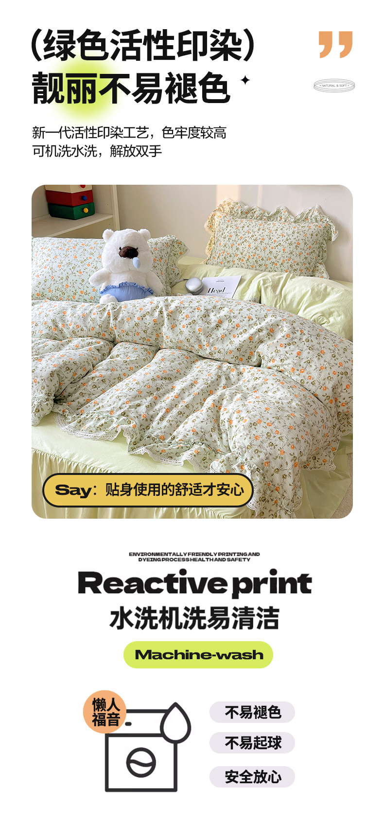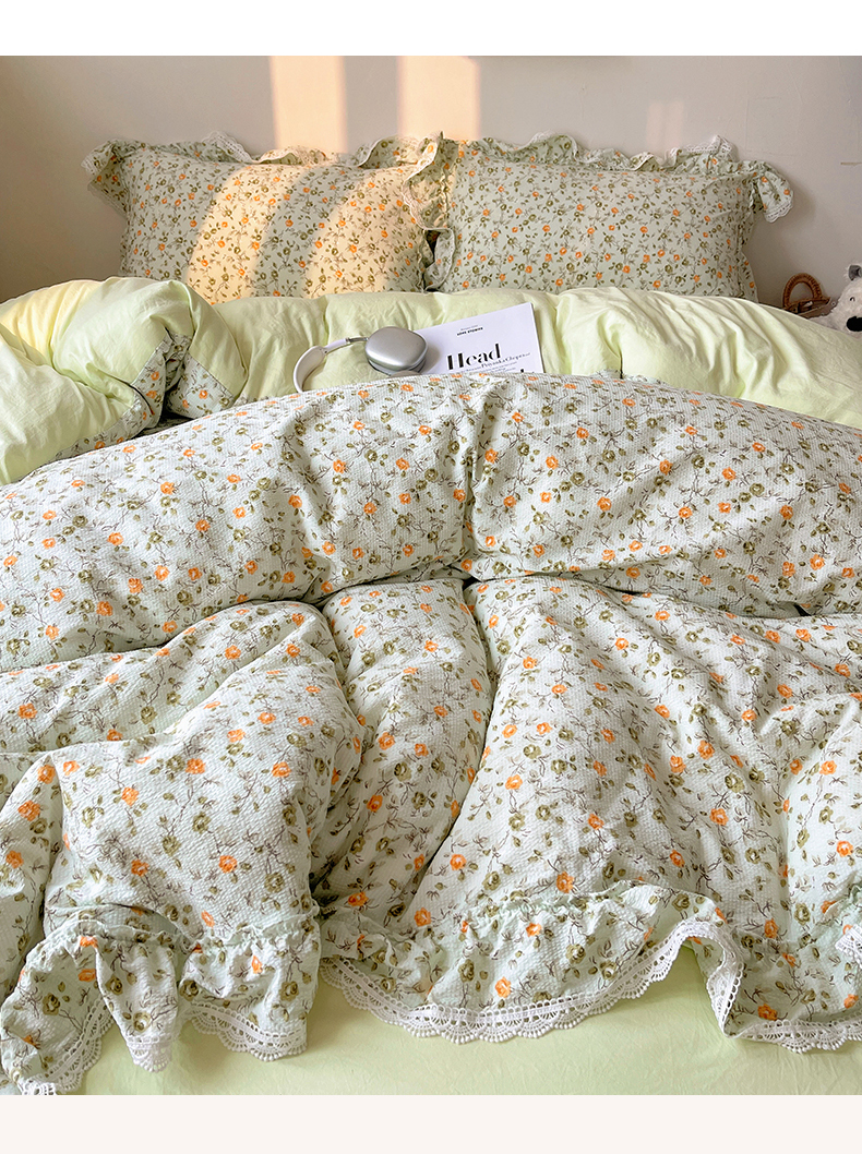 当前位置: 91家纺网 > 商品网购 > 床品套件 > 四件套 > 其它四件套 > 轻奢坊 2024新款韩系ins花边款清甜系列四件套 清甜绿