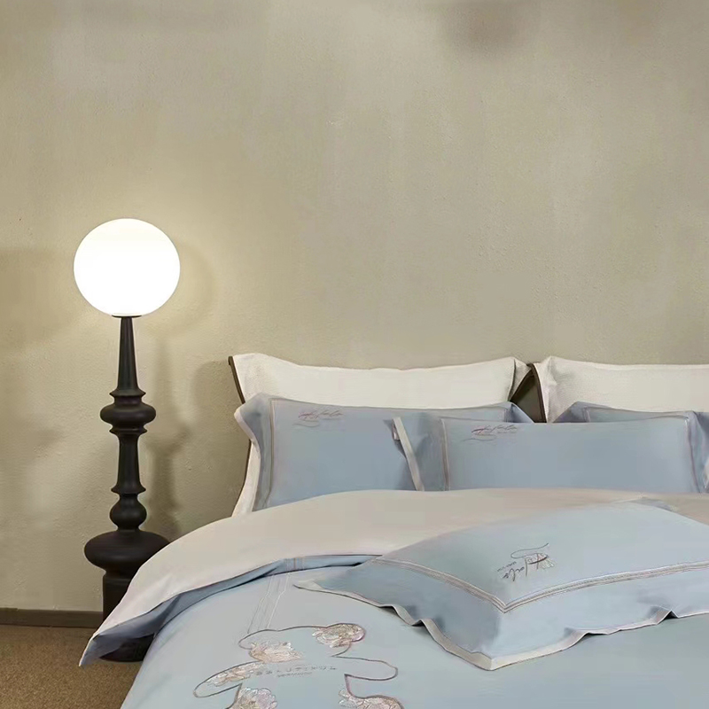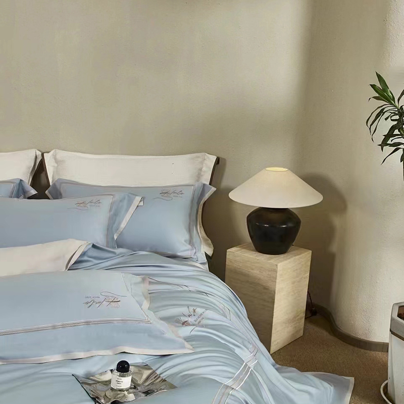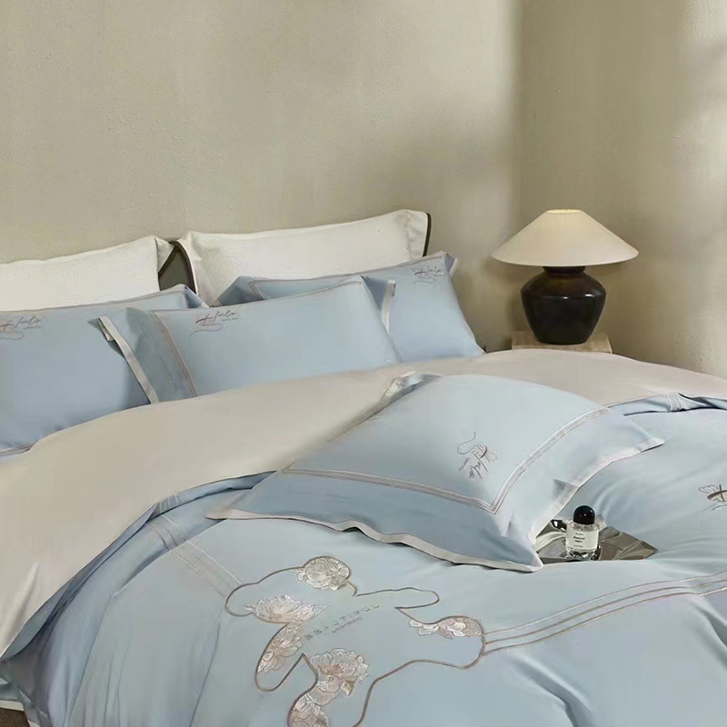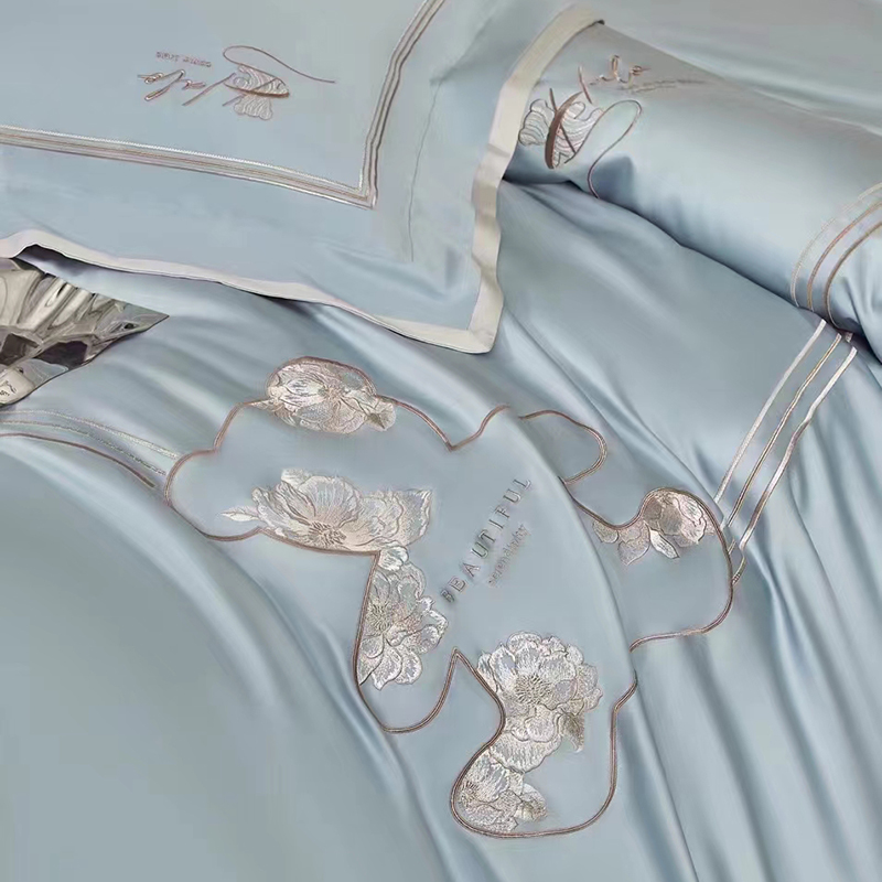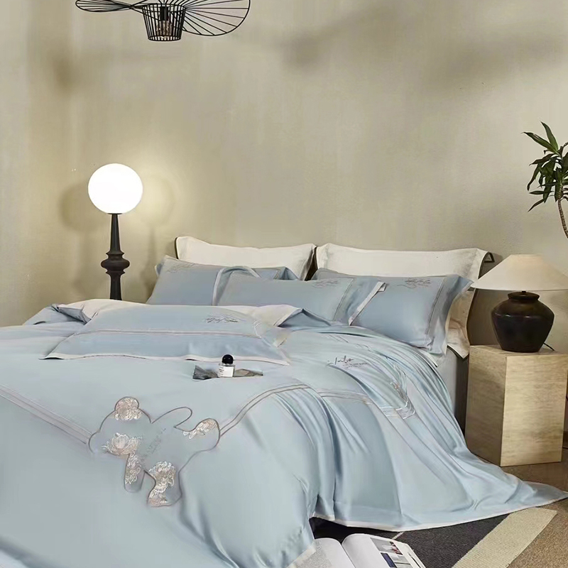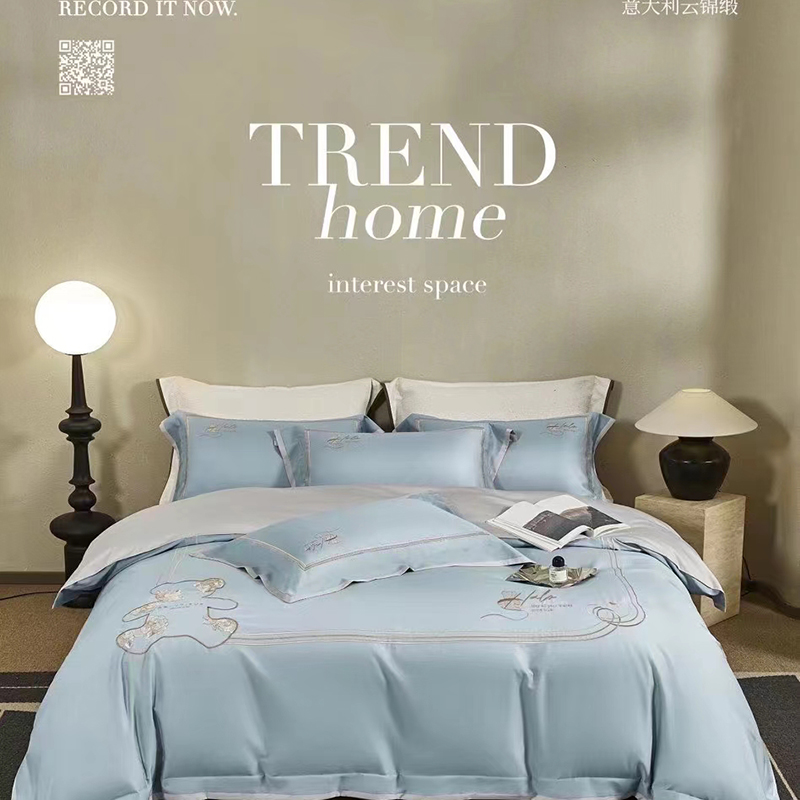 玖玖爱家纺 2024春夏新品意大利云锦缎四件套 苍蓝