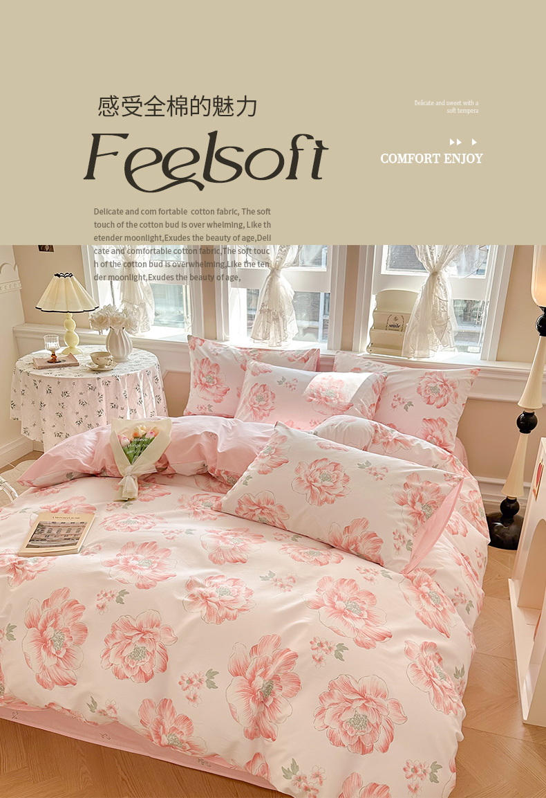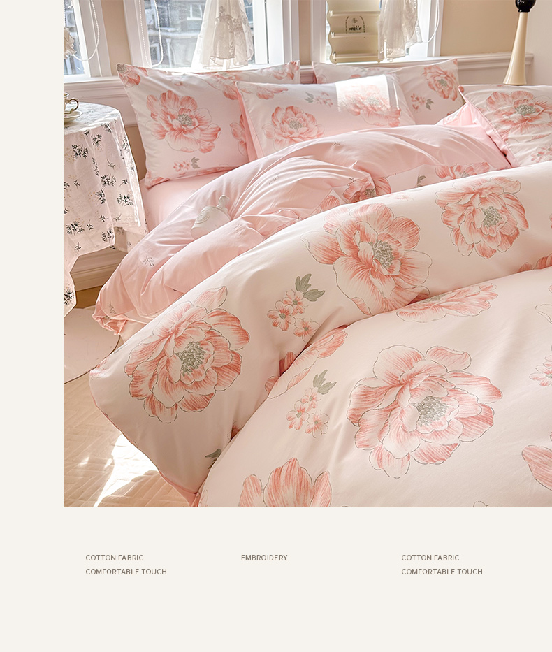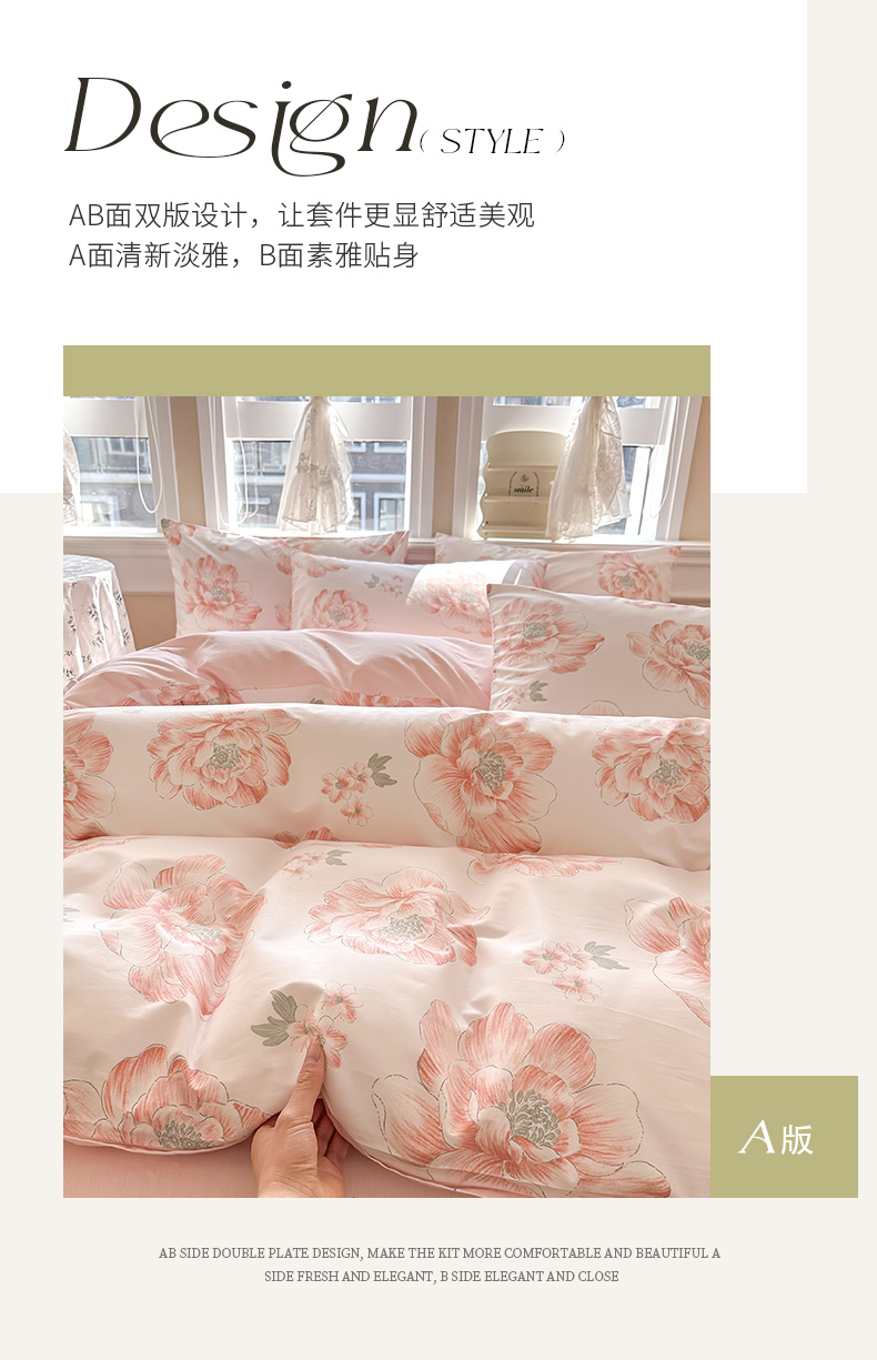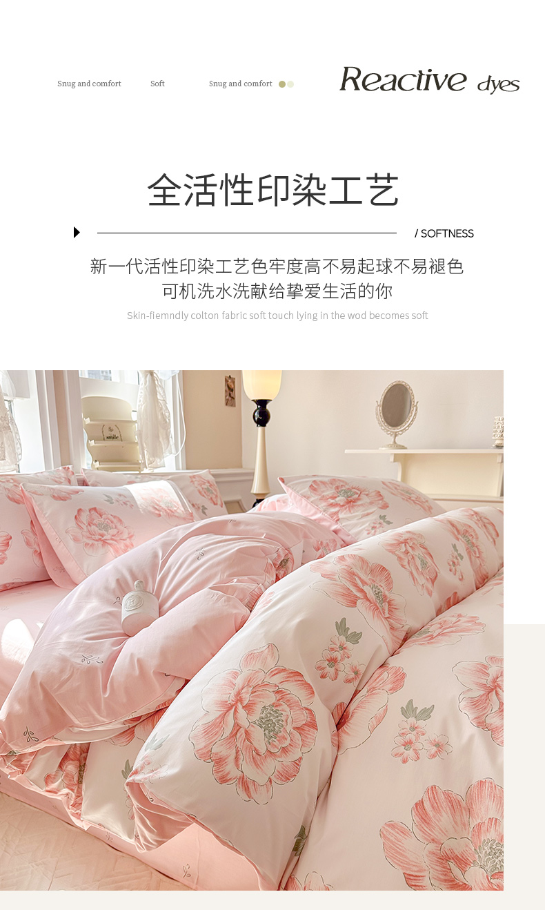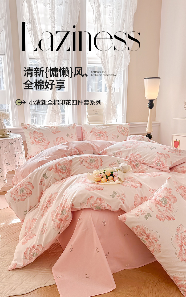 晨希家居 2024新款小清新全棉印花四件套 牡丹花开