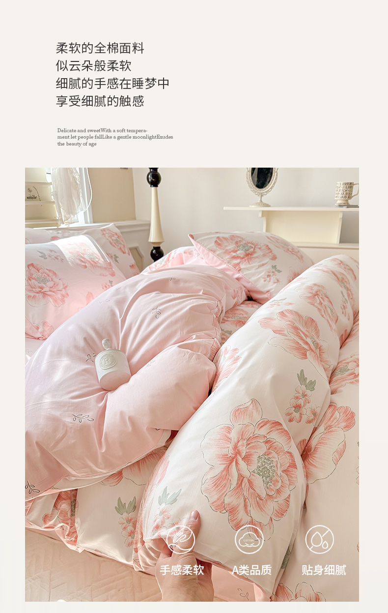 商品名称:晨希家居 2024新款小清新全棉印花四件套 牡丹花开