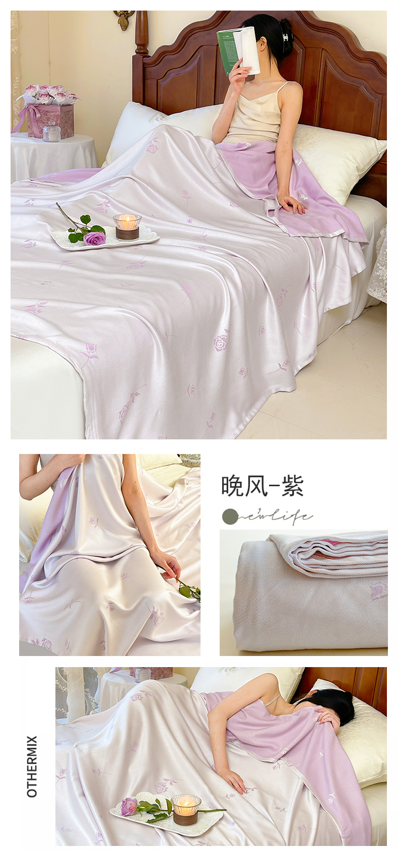 商品名称:麻依 2024新款竹纤维单层毛巾被盖毯夏凉被冷感毯 晚风-紫
