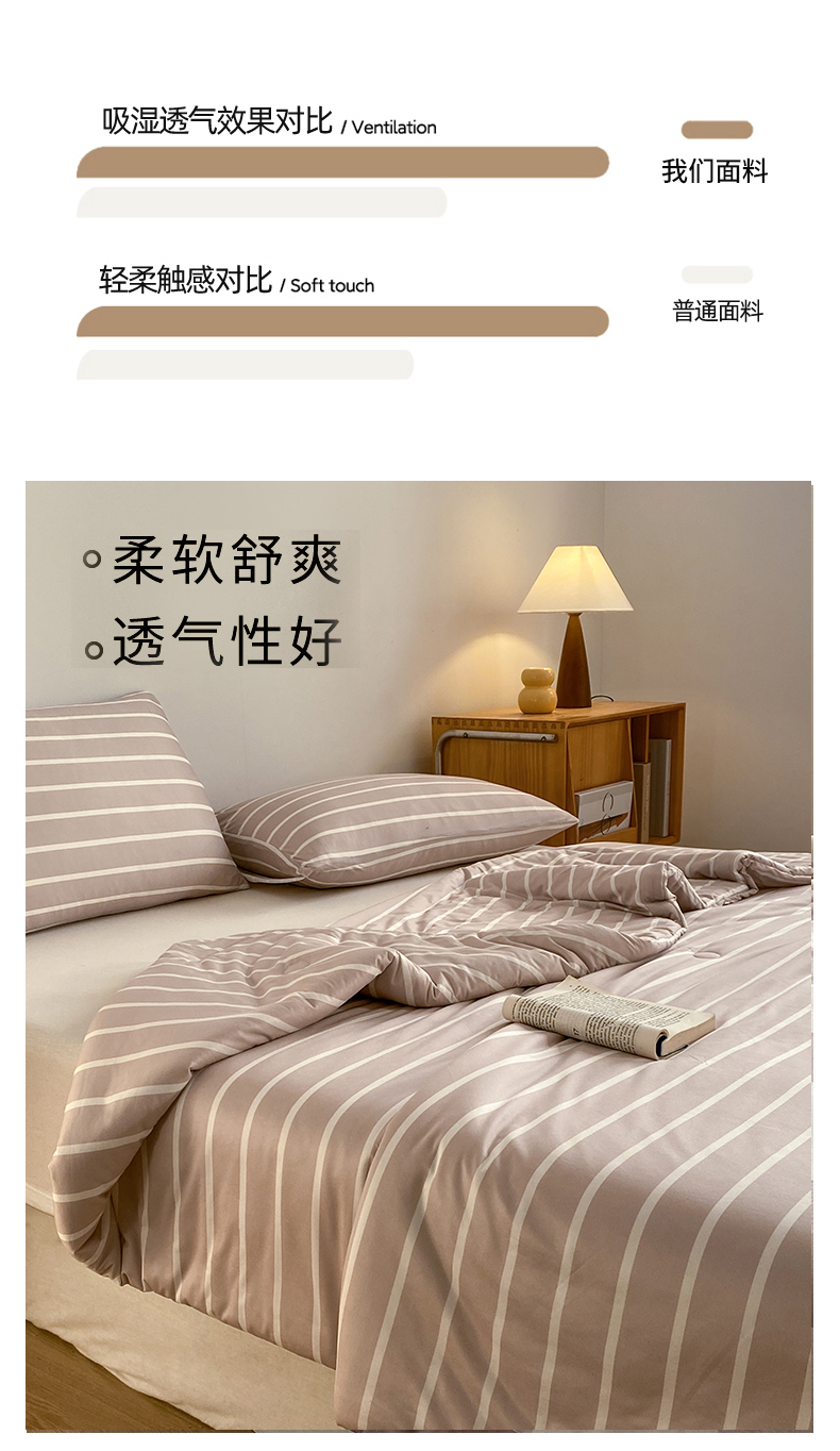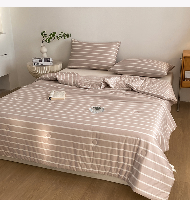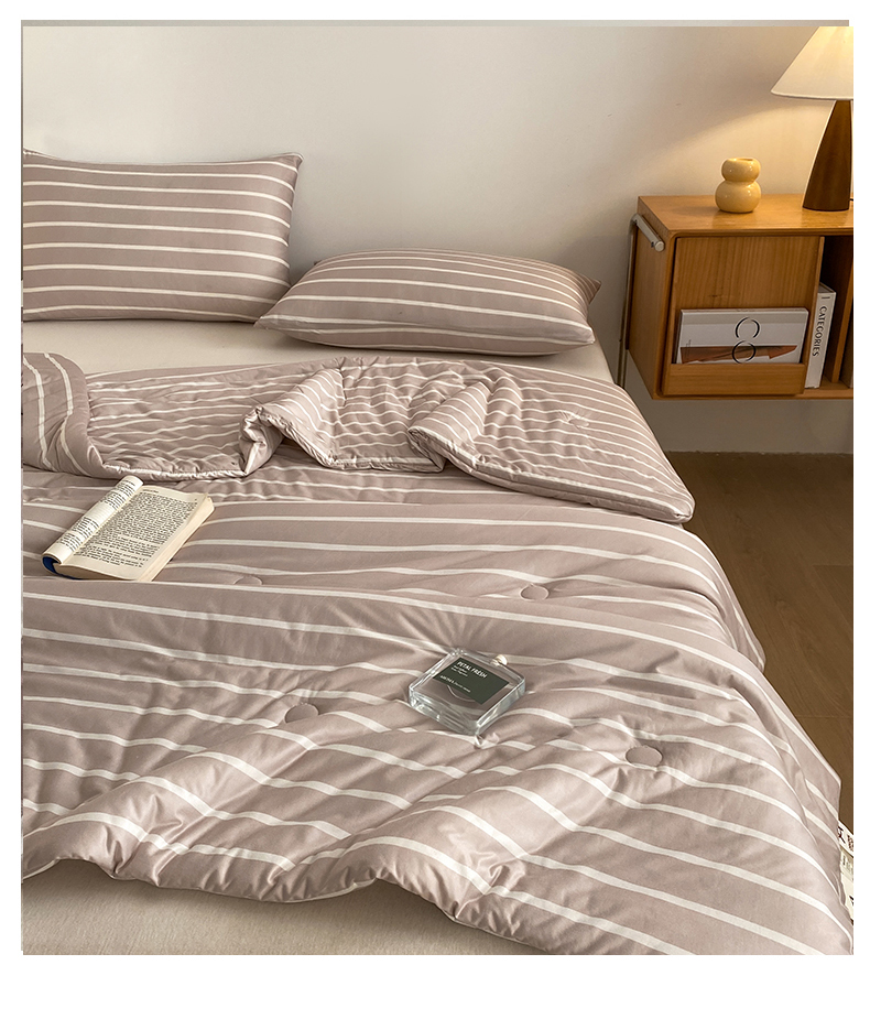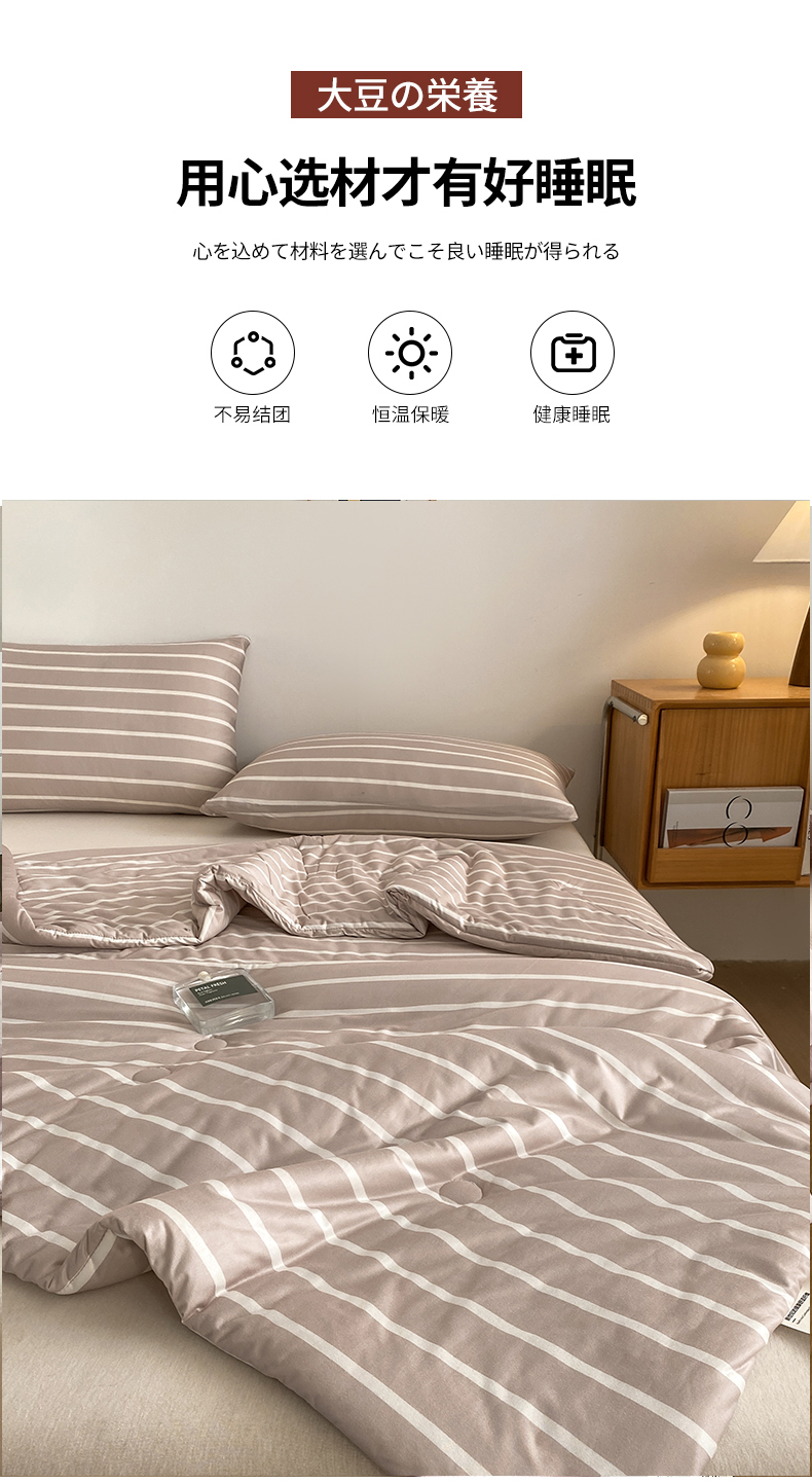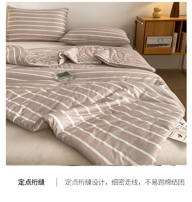 (总)荔禾家居 2024新款A类素色条纹双拼大豆被子被芯,条纹-白茶咖,条纹-洱海蓝,条纹-盈盈粉,条纹-珍珠白