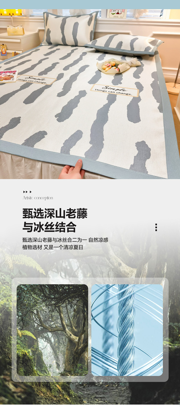 商品名称:慕尚 2025新款800D冰藤凉席 线条