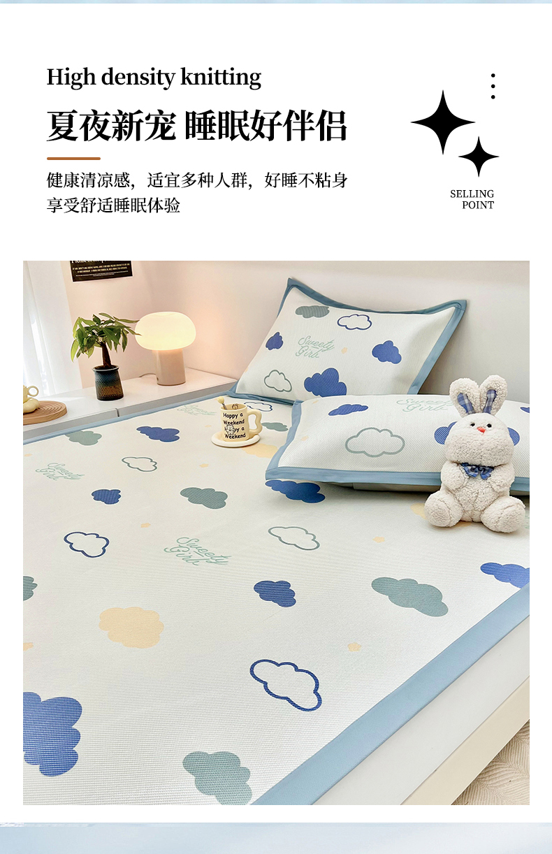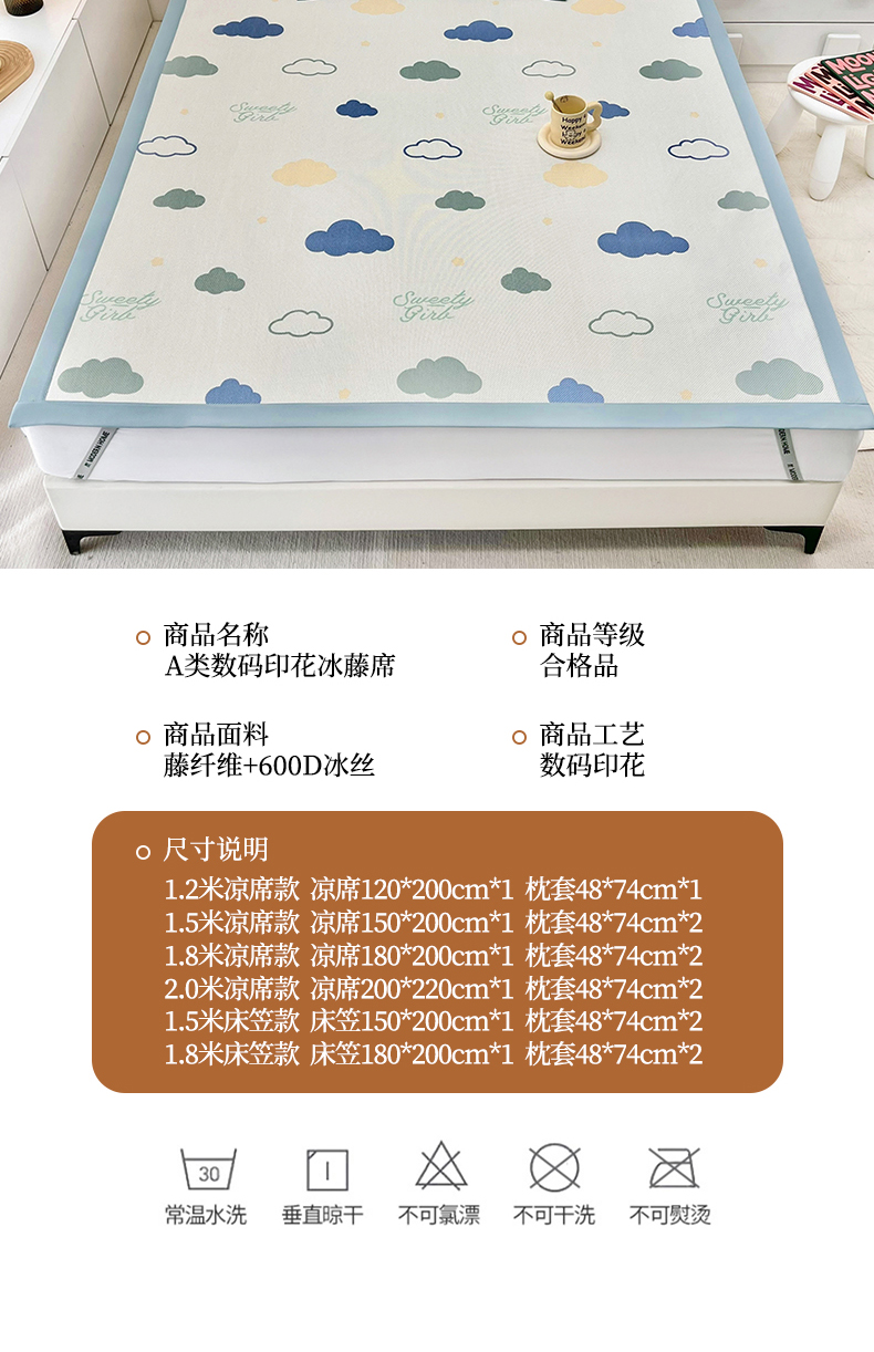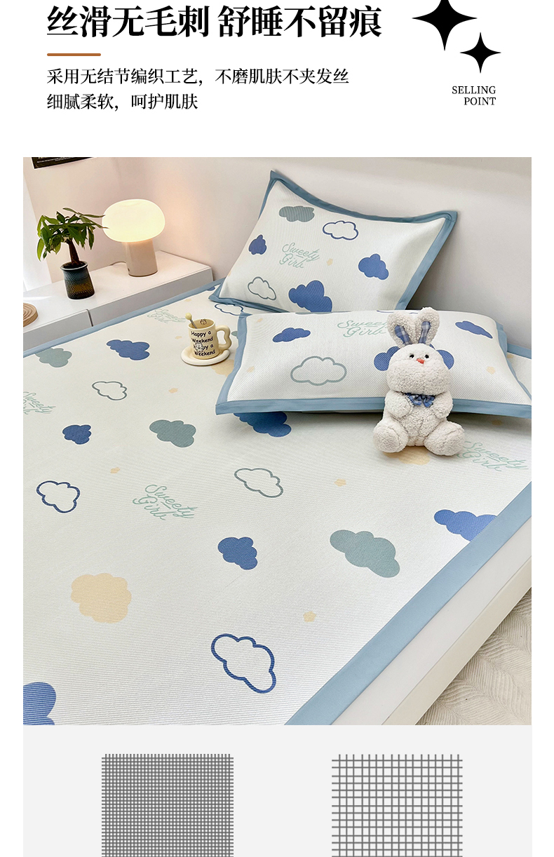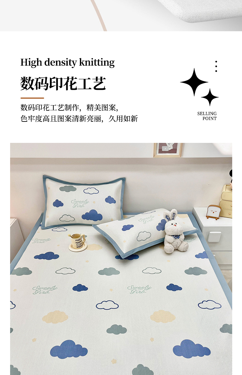 当前位置: 91家纺网 > 商品网购 > 床上用品 > 凉席 > 其他凉席 > 全季家居 2024新款5A抗菌小清新数码印花冰藤席 床席款-云朵