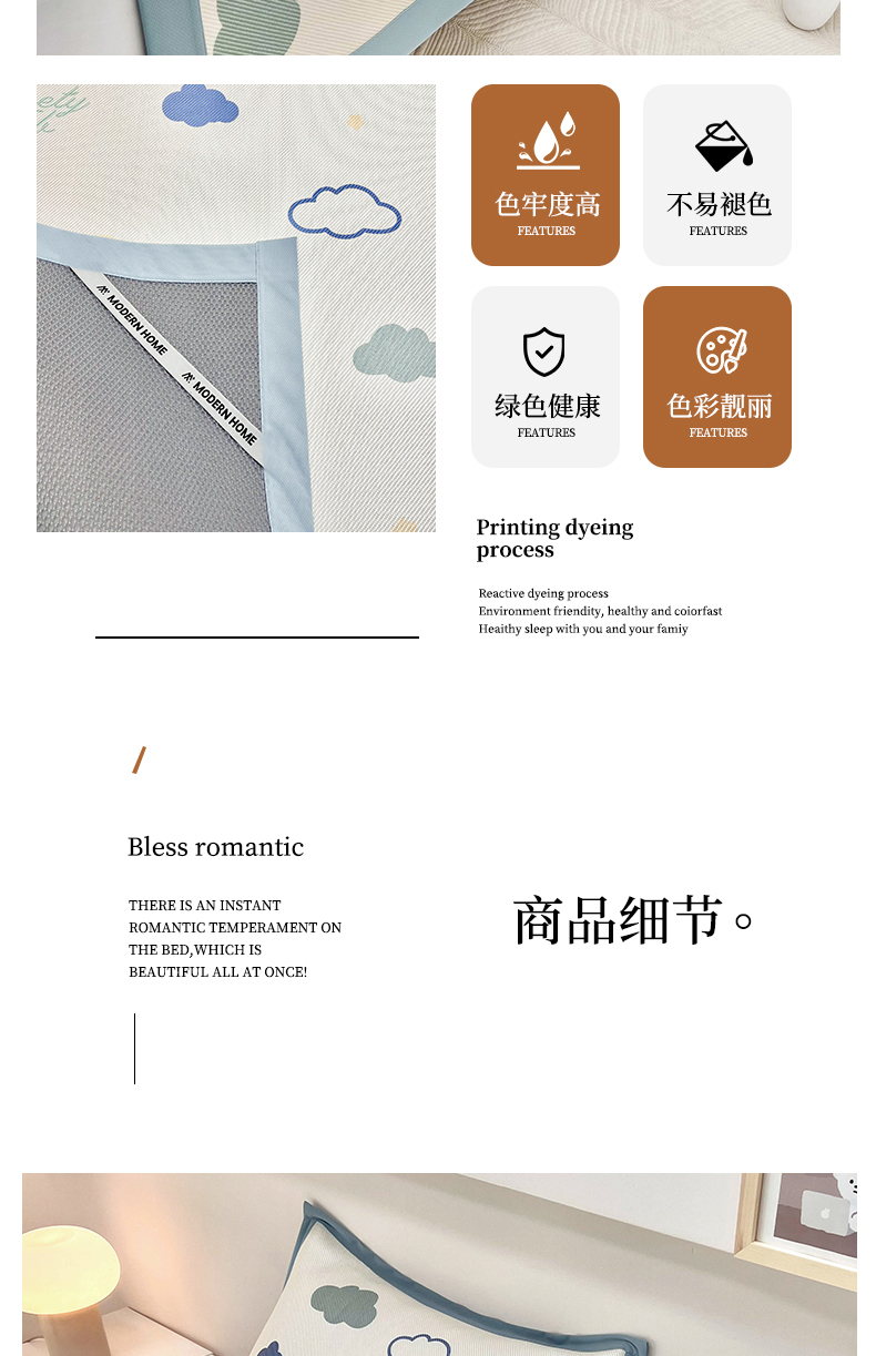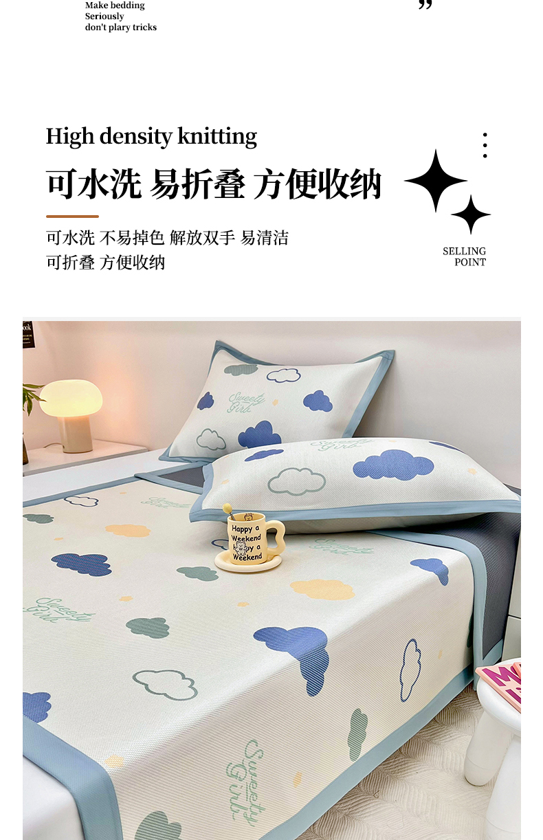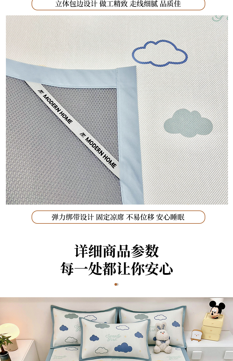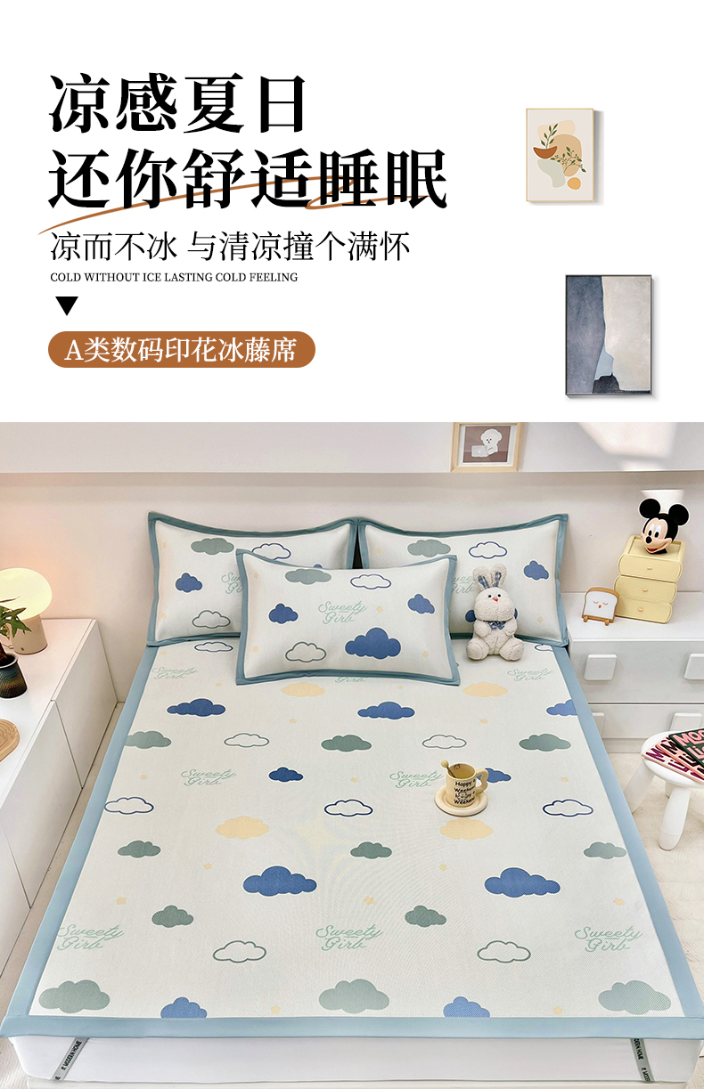 当前位置: 91家纺网 > 商品网购 > 床上用品 > 凉席 > 其他凉席 > 全季家居 2024新款5A抗菌小清新数码印花冰藤席 床席款-云朵